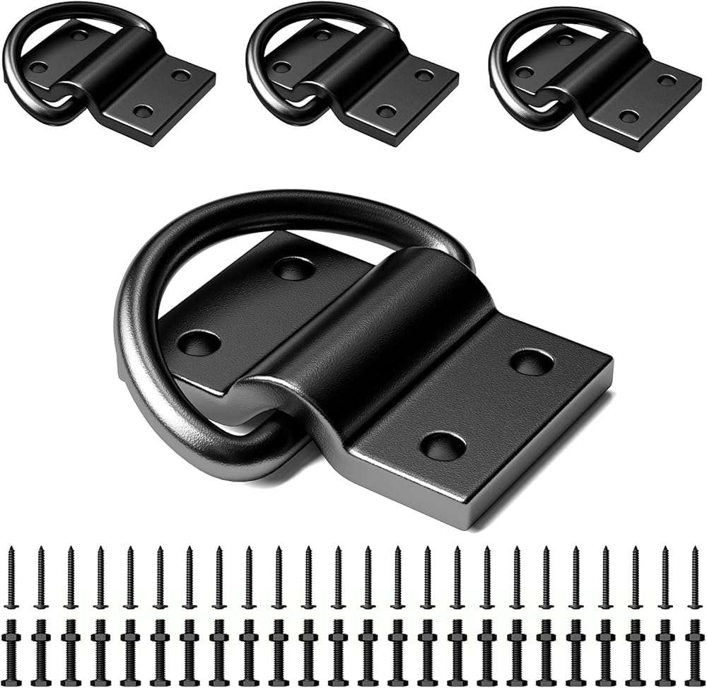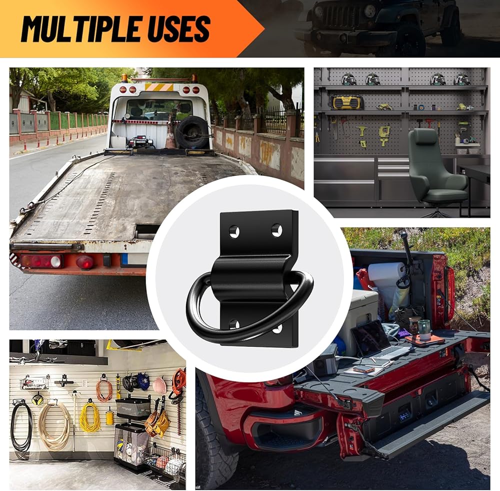 【D يرن الخدمة الثقيلة】: تم تصنيع ربط حلقة D الخاص بنا من الصلب الثقيل ، لوحة مربعة مع أربعة ثقوب برغي ، مع قدرة أفضل للحمل. سوف يحمي البضائع الخاصة بك بشكل أفضل من الأذى!