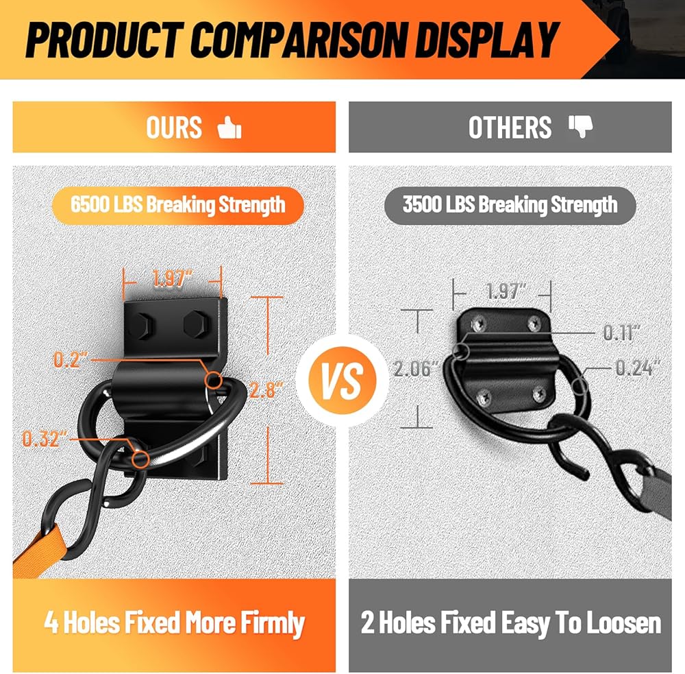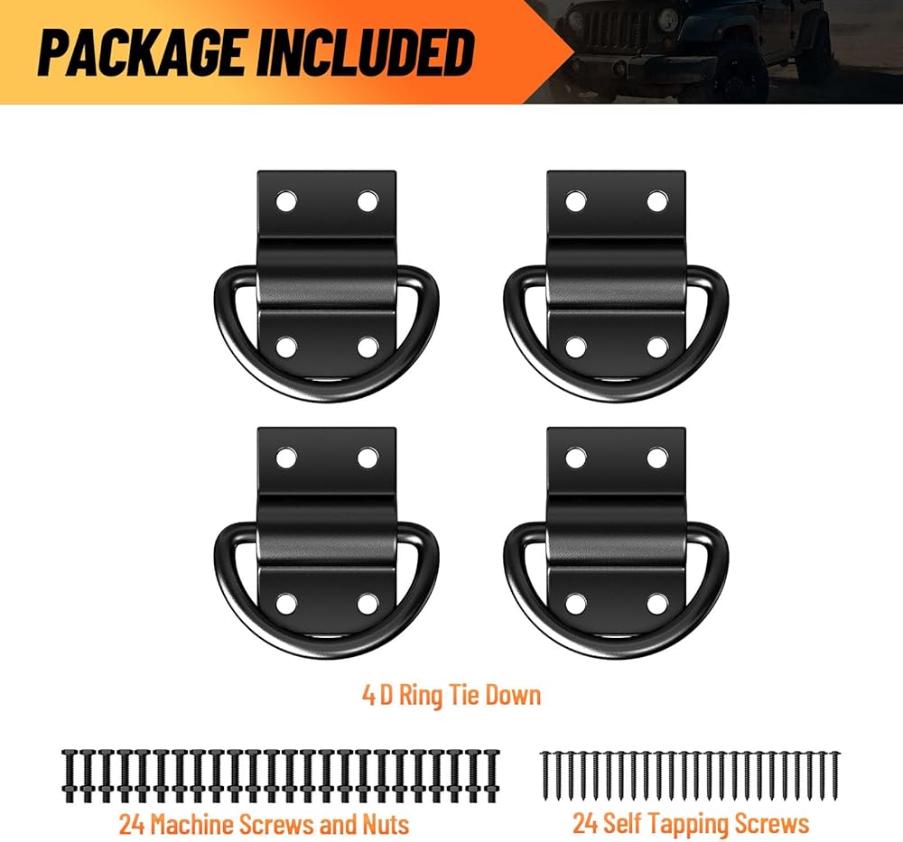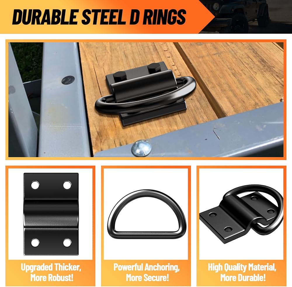 【قوي ودائم】: واحد من 4 حفرة D يرن قوة الخدمة الثقيلة التي تصل إلى 6500 رطل ، مما يعني أن رنين 6 أيام يمكن أن يقاوم 39000 رطل. D Ring Tie Down مرساة مغلفة بطبقة مضادة لضمان مقاومة الصدأ والتآكل من أجل المتانة الحقيقية والمتانة.