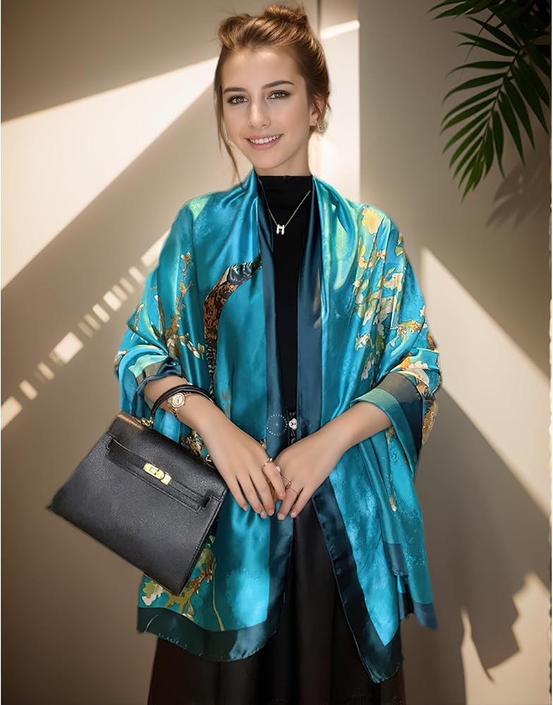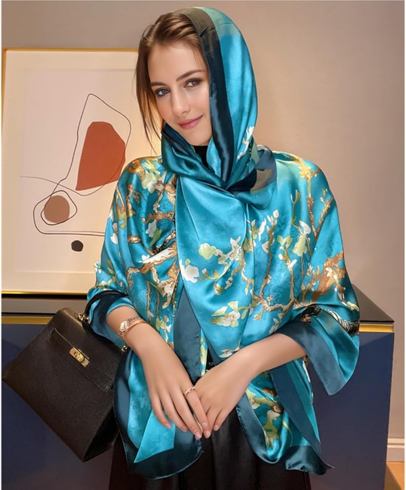 الحجم المناسب: حجم وشاح الحرير هذا هو 70.8 "× 33.5" (180 سم × 85 سم). الوزن: 1.59 أوقية (45 جرام) ، الحجم المناسب للاستخدام كشاح أو شال بعدة طرق مختلفة ، يمكن استخدامها من قبل النساء من جميع الأعمار