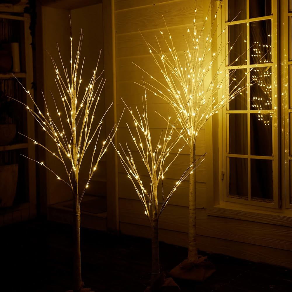 أضواء شجرة البتولا القابلة لإعادة الاستخدام: كل شجرة بتوري تتميز 24 أضواء LED بيضاء دافئة. الفروع المرنة تجعل من السهل تعليق الحلي. تصل عمر المصابيح لمدة تصل إلى 25000 ساعة ، حتى تتمكن من الاستمتاع بها عاماً بعد عام