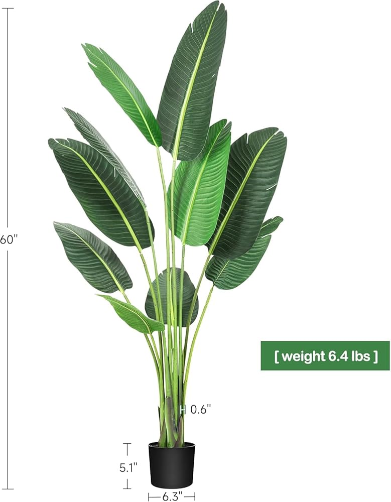60 بوصة شجرة الاصطناعية طائر من الجنة النبات الاصطناعي مع 10 جذوع شجرة مزيفة - 5 أقدام فو النباتات نبات الموز مزيفة مع وعاء الأشجار الاصطناعية للمنزل ديكور داخلي في الهواء الطلق
