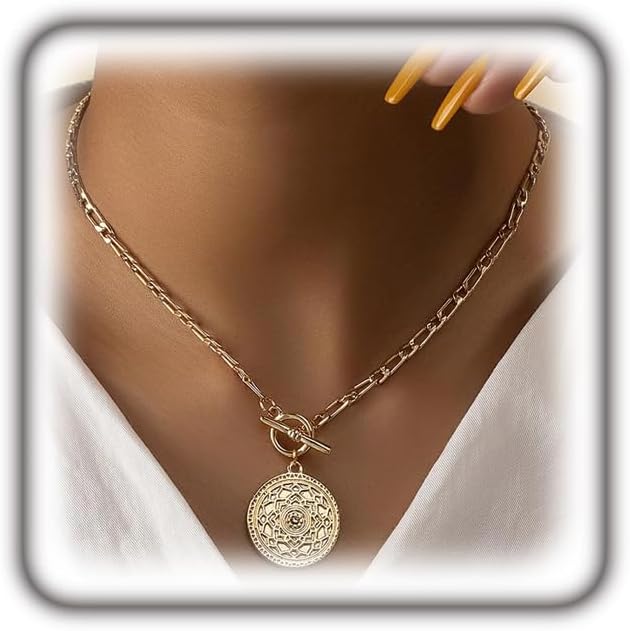 قلادة قلادة قلادة من العملات المعدنية القديمة-تحتوي قلادة ميدالية الشرير هذه على تصميم مذهل ، سلسلة فيجارو معدنية مع قفل OT مع سمات الشرير ، وبعد ذلك مع قلادة ميدالية كبيرة ، فإن القلادة مغمورة بشكل غني بالغنية.