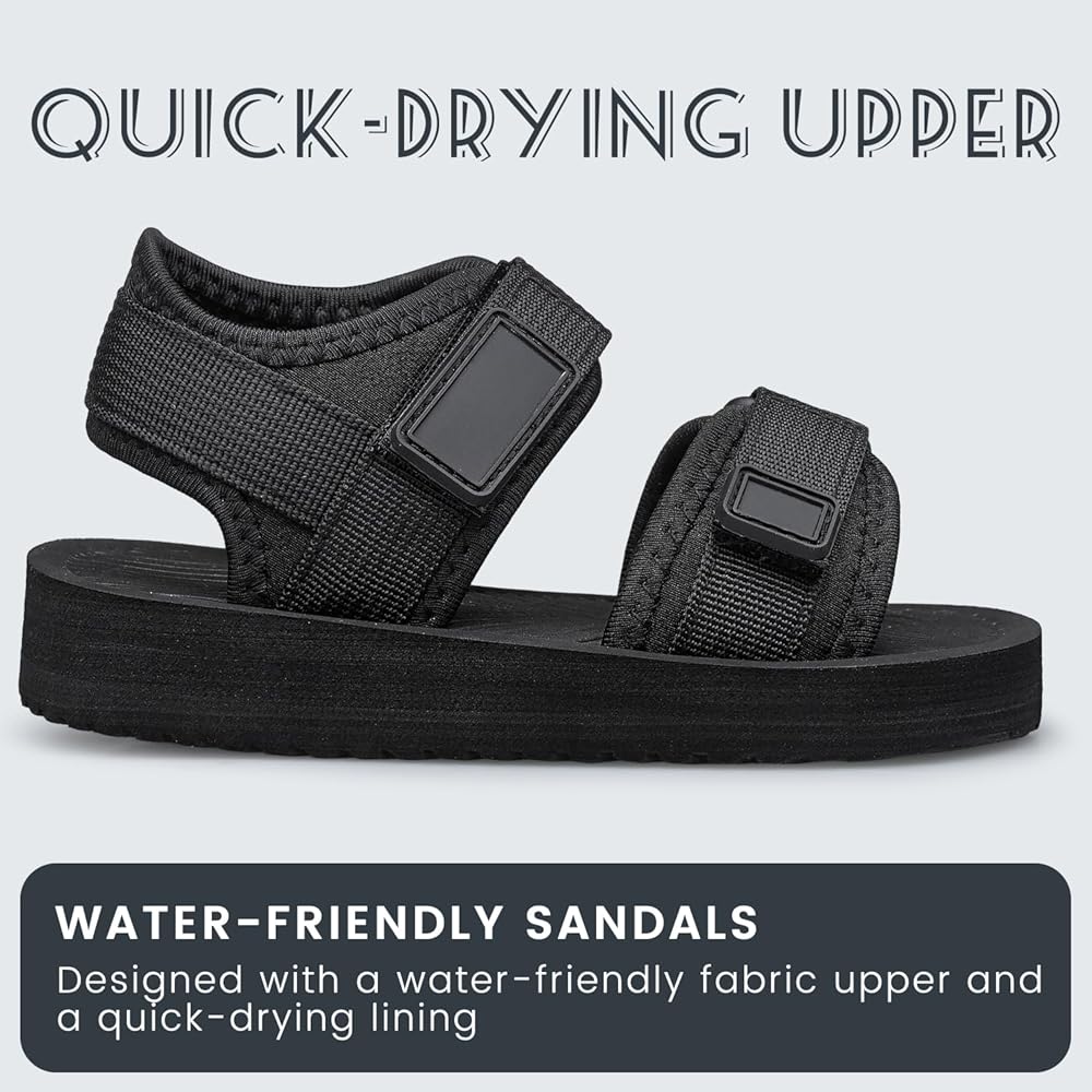 الصنادل الصديقة للطفل: مصممة مع الجزء العلوي من النسيج الصديق للمياه وبطانة تجفيف سريع ، هذه الصنادل هي الخيار الأمثل للأطفال الذين يحبون الاستمتاع في الماء أو حوله.