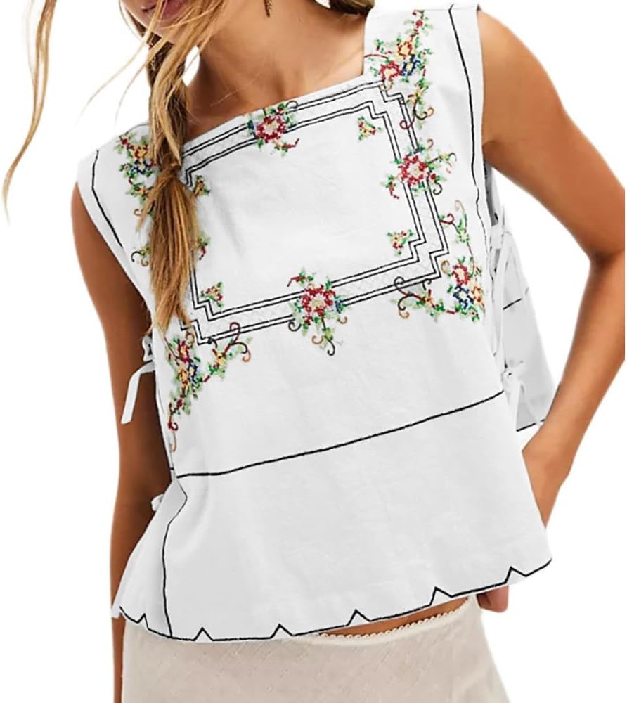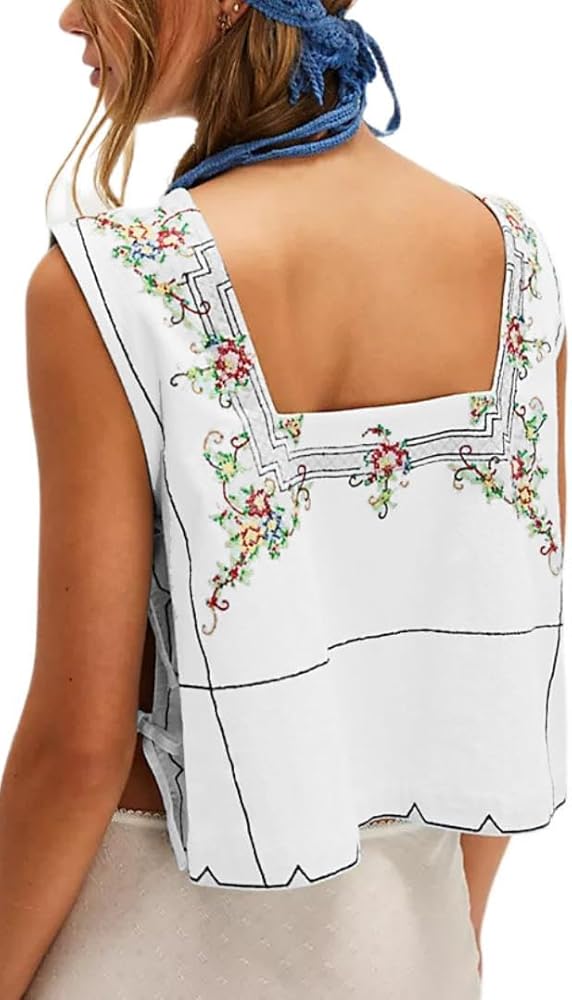 Features: V-neck crop vest for women with sleeveless, solid color/floral embroidered, tie bow closure design adds to the overall cuteness and the clean colors will make you feel cool in the hot summer