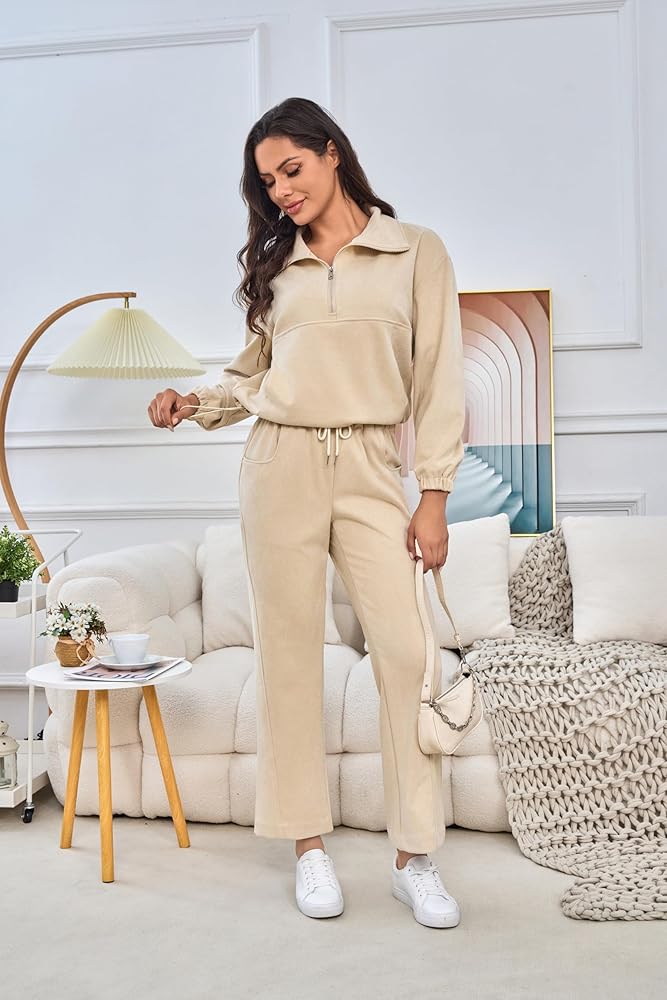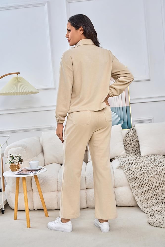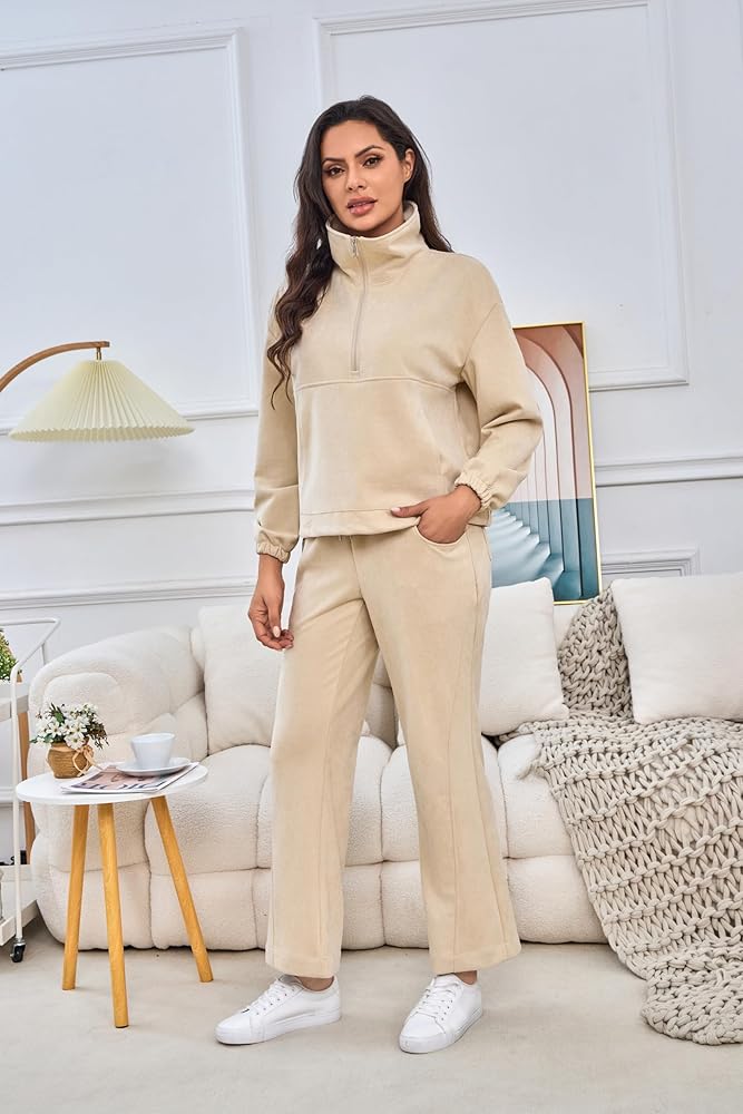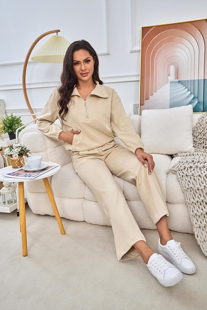 ❤【 المواد المريحة】 مصنوعة من مادة ناعمة ومريحة ومطوية قليلاً ، توفر هذه المجموعة النشطة الدفء والراحة. مجموعة ملابس الصالة المكونة من قطعتين أنيقة ومريحة ، مع شعور مريح وصديق للبشرة.