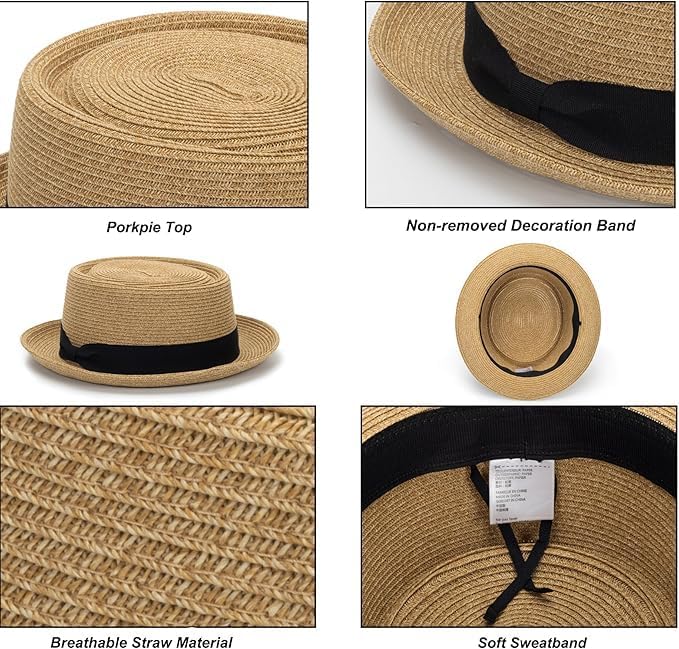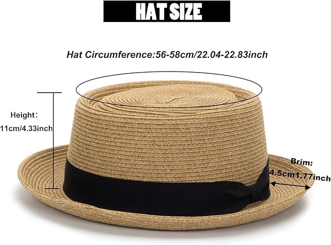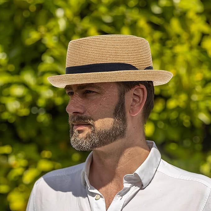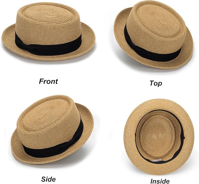قبعة فطيرة لحم الخنزير الصيفية للرجال - قبعات شمس الصيف مع حزام Bowknot (الحجم: S -M)