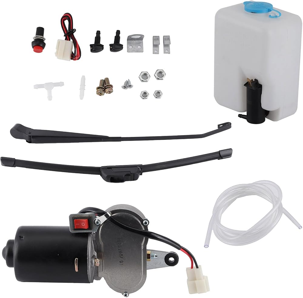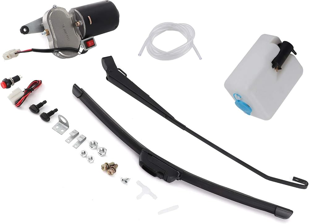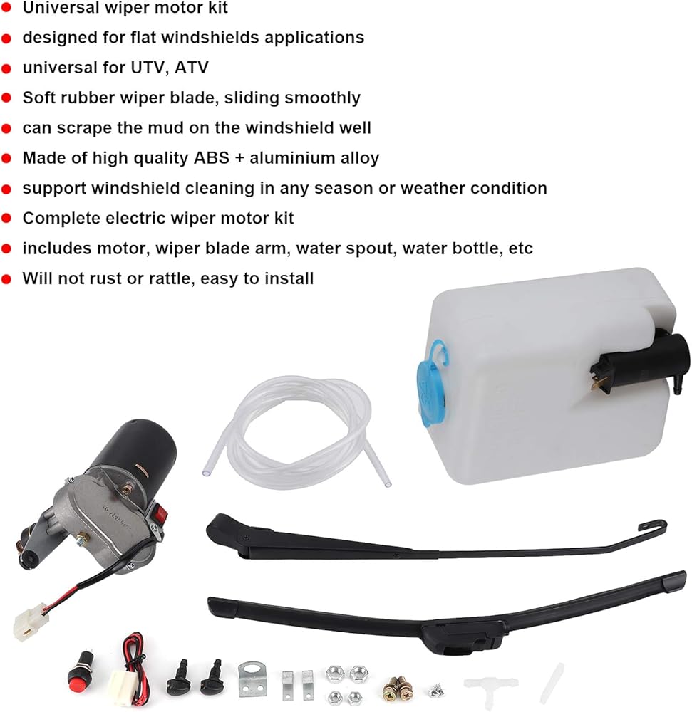 • 【Easy to Install】: This windshield wiper kit includes complete installation tools including motor, wiper arm, water outlet, water bottle and more. It is convenient for your installation and saves time.