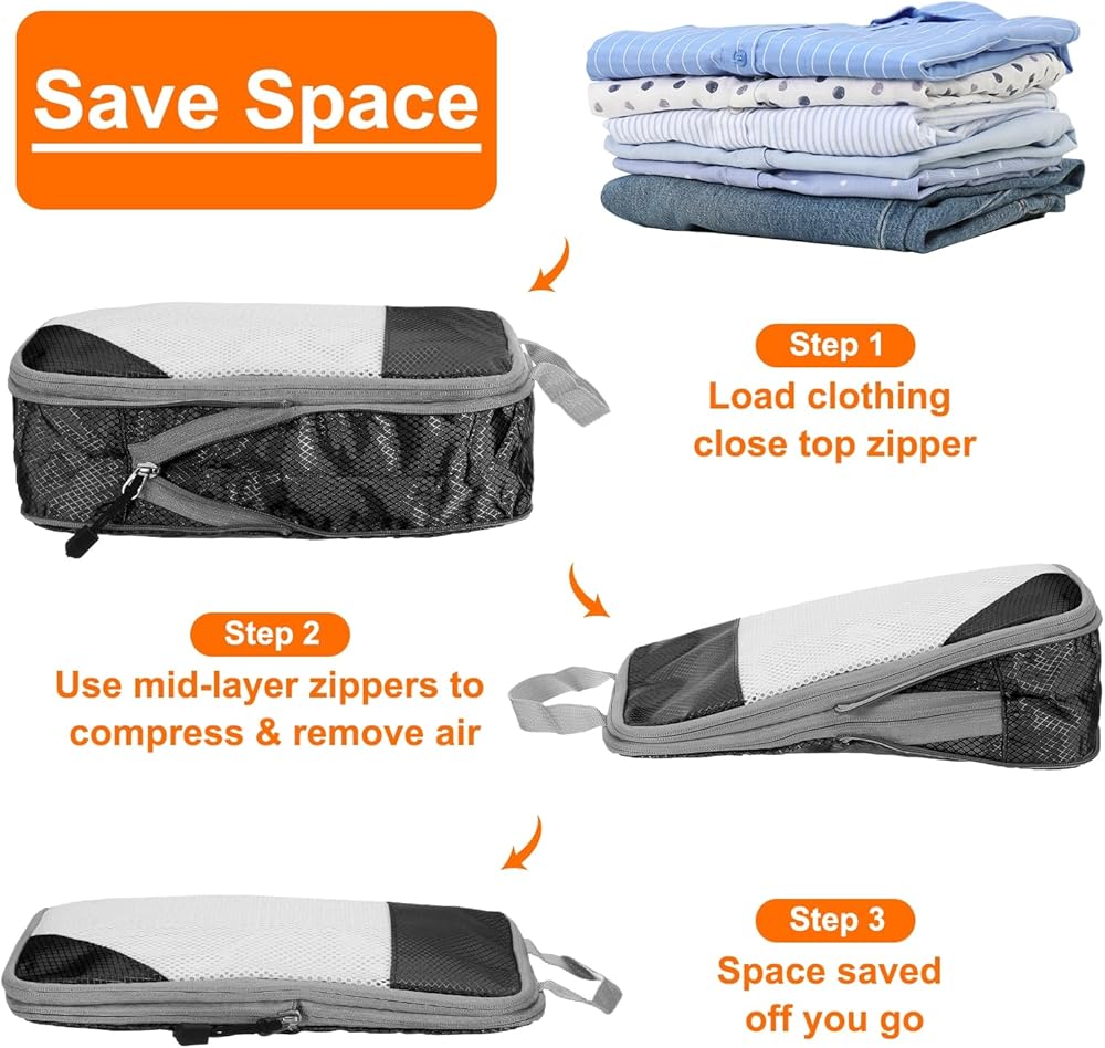 • توفير المساحة - يمكن أن يوفر استخدام أكياس الضغط لحزم أمتعتك مساحة وتوفير ما يصل إلى 50 ٪ من مساحة التخزين. يمكن لأكياس السفر ذات الأحجام المختلفة فرز وتنظيم الملابس وأدوات النظافة ، وما إلى ذلك ، والحفاظ على العناصر مرتبة وخالية من الرائحة ، وتجد ما تحتاجه بسرعة.