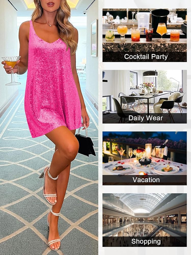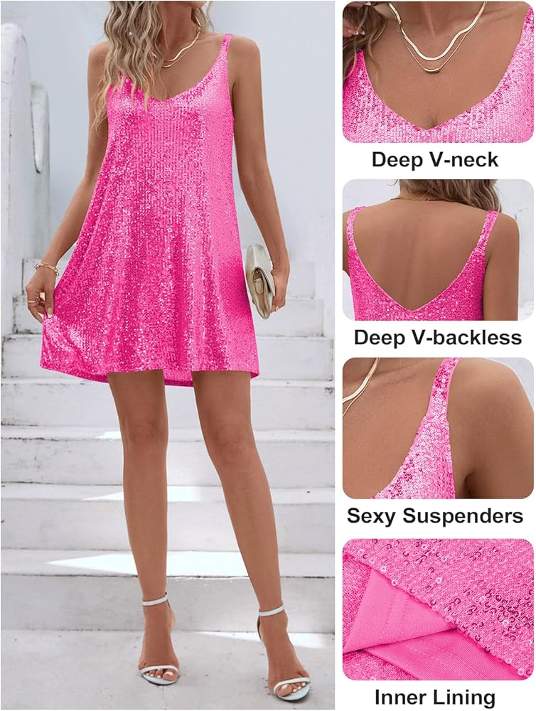 • 【يستخدم لباس النسيج】 فستان الترتر النسائي نسيجًا عالي الكثافة للترتر لجعل الفستان يبدو أكثر مجسمة وتلقية ، وخاصة أكثر إبهارًا تحت الضوء. مبطن بالكامل ، لا ترى من خلال ، تجنب القطع ، وتزويدك بتجربة ارتداء فضفاضة ومريحة.