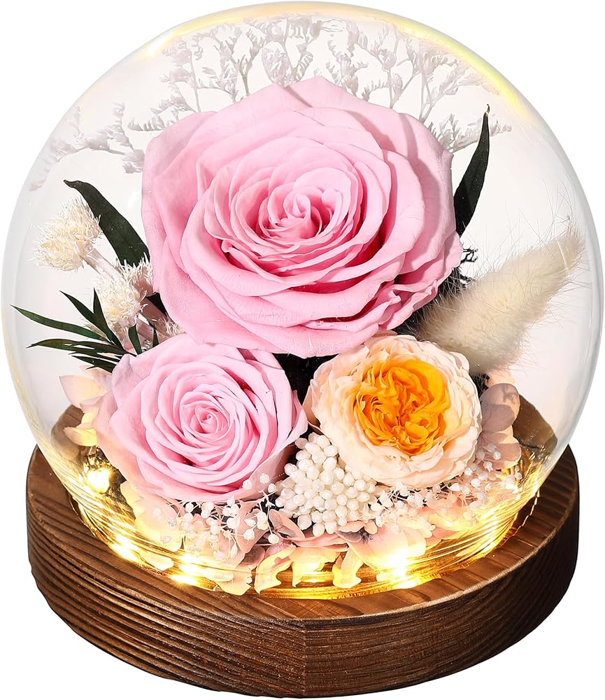 【هدية رائعة】 الزهرة الحقيقية في القبة الزجاجية هي هدية جذابة ومثبتة لها ، سيكون اختيارًا جيدًا لعيد الأم ، يوم عيد الحب ، عيد الميلاد ، هدية عيد ميلاد للنساء. كما يمكن أن يكون ترتيب زهور في المنزل والمكتب