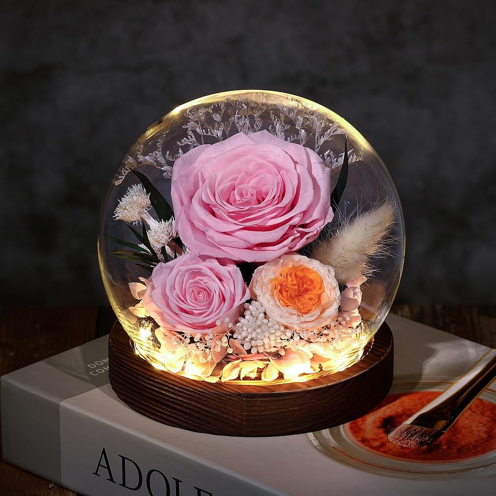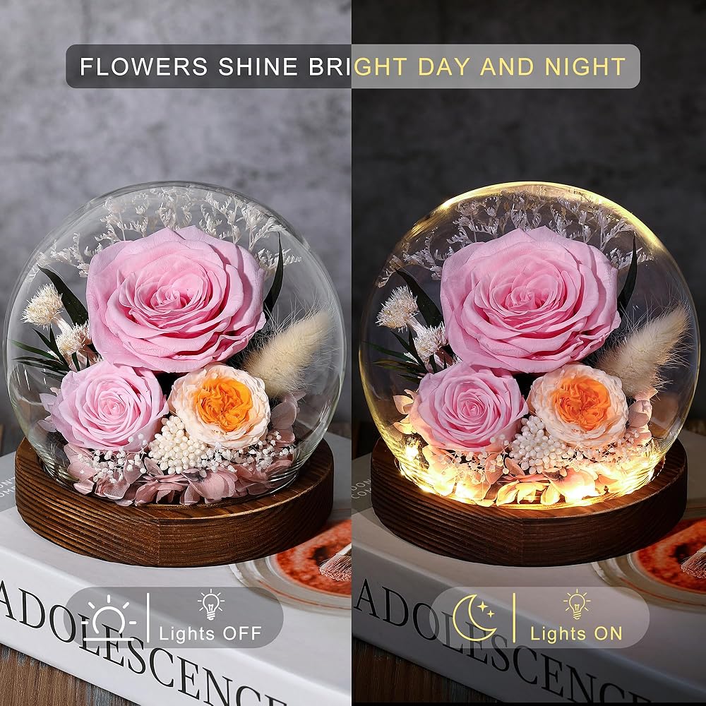【هدايا لها】 لقد تم تعبئتها بشكل جيد في قبة زجاجية تحميها وتختتم مثل الزهرة التي ستشتريها في بائع الزهور. يمكنك بالتأكيد اعتبار هذا شراء جيد لأحد أفراد أسرتك في حياتك (يتطلب بطاريات AAA في القاعدة السفلية للضوء ، غير مدرجة)