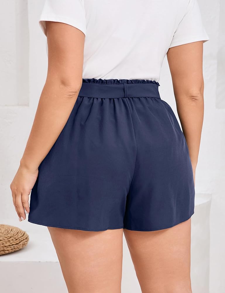 تصميم أنيق : هذا الحجم بالإضافة إلى السراويل القصيرة المريحة لتصميم النساء مع الخصر الورقي الزهير مع الحزام ، جيوب جانبية ، ساق واسعة وأسلوب بوهو.