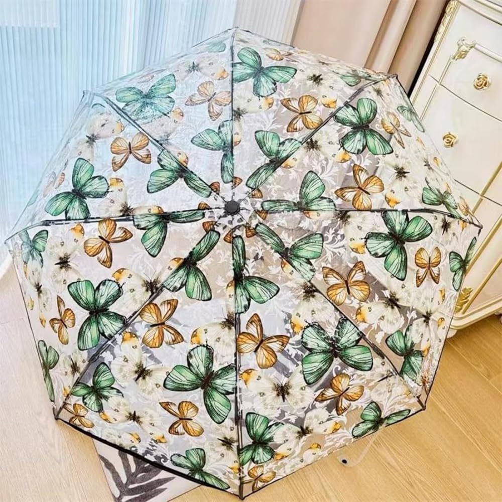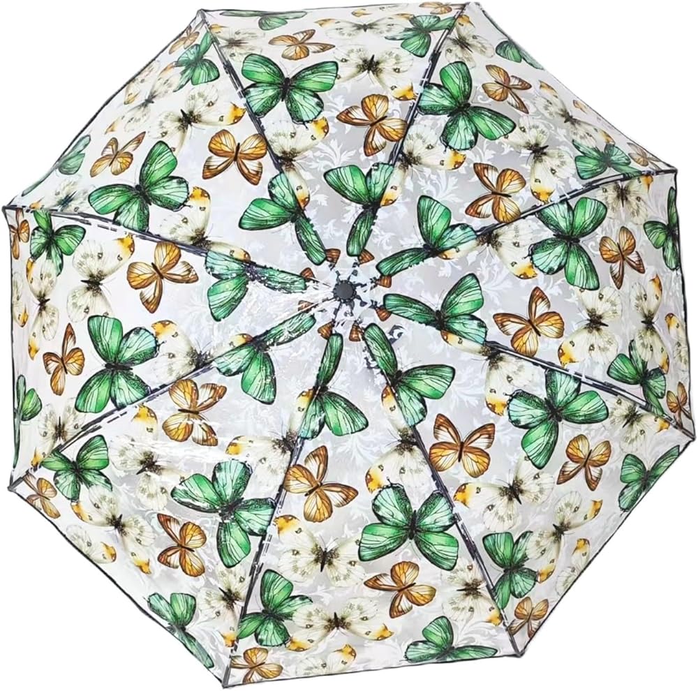Butterfly Clear Umbrella Women Elegant Unique Automatic Open Close Transparent Umbrella with Easy Grip Handle Travel Folding Umbrella