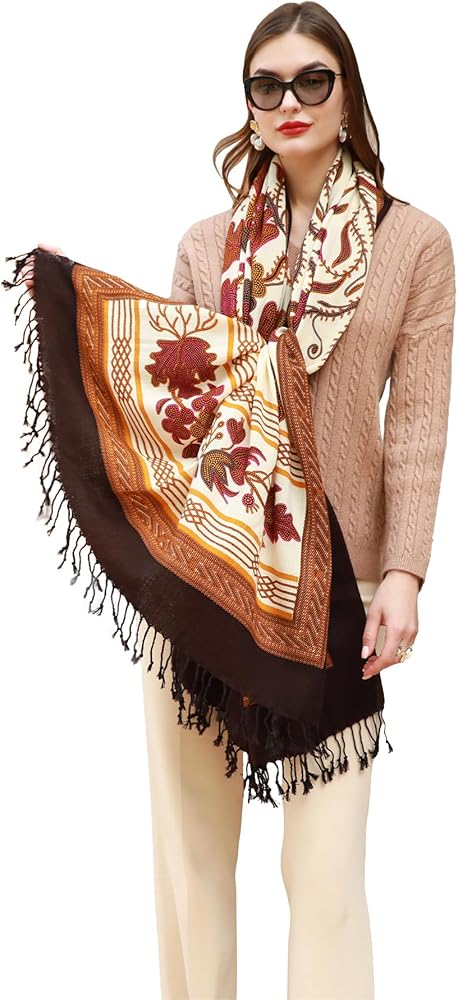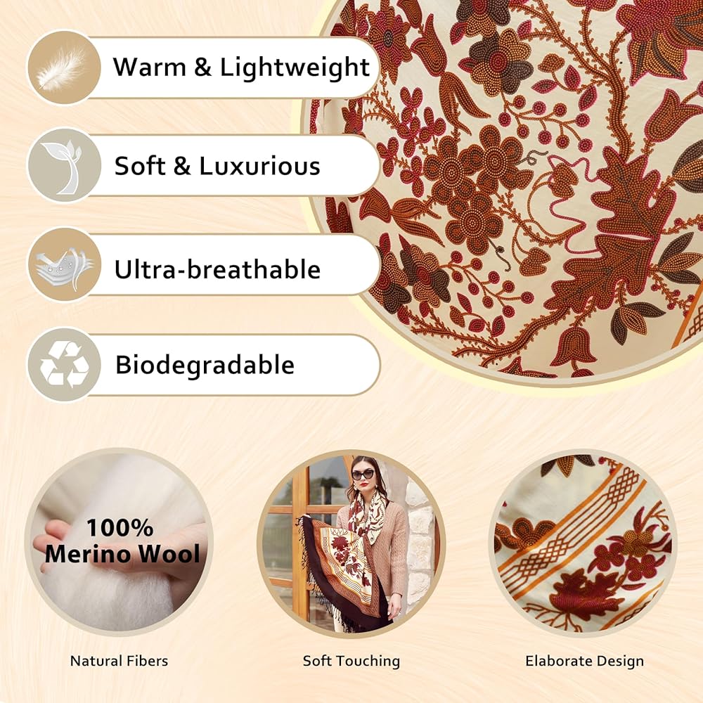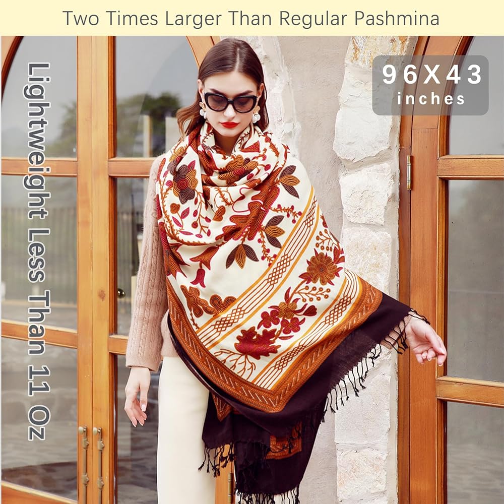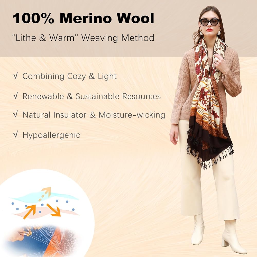 شال من الصوف النقي الفاخر للنساء: 100 ٪ من الصوف ميرينو للفاشمينا لفات ، لينة وسلسة. 96 × 43 بوصة مع شرابة مصنوعة يدويًا ، أكبر مرتين من الشال العادي ، دافئ كبطانية وخفيفة الوزن أقل من 11 أوقية. مثالي للسفر ، في إجازة ، حفلة أو كهدية مذهلة.