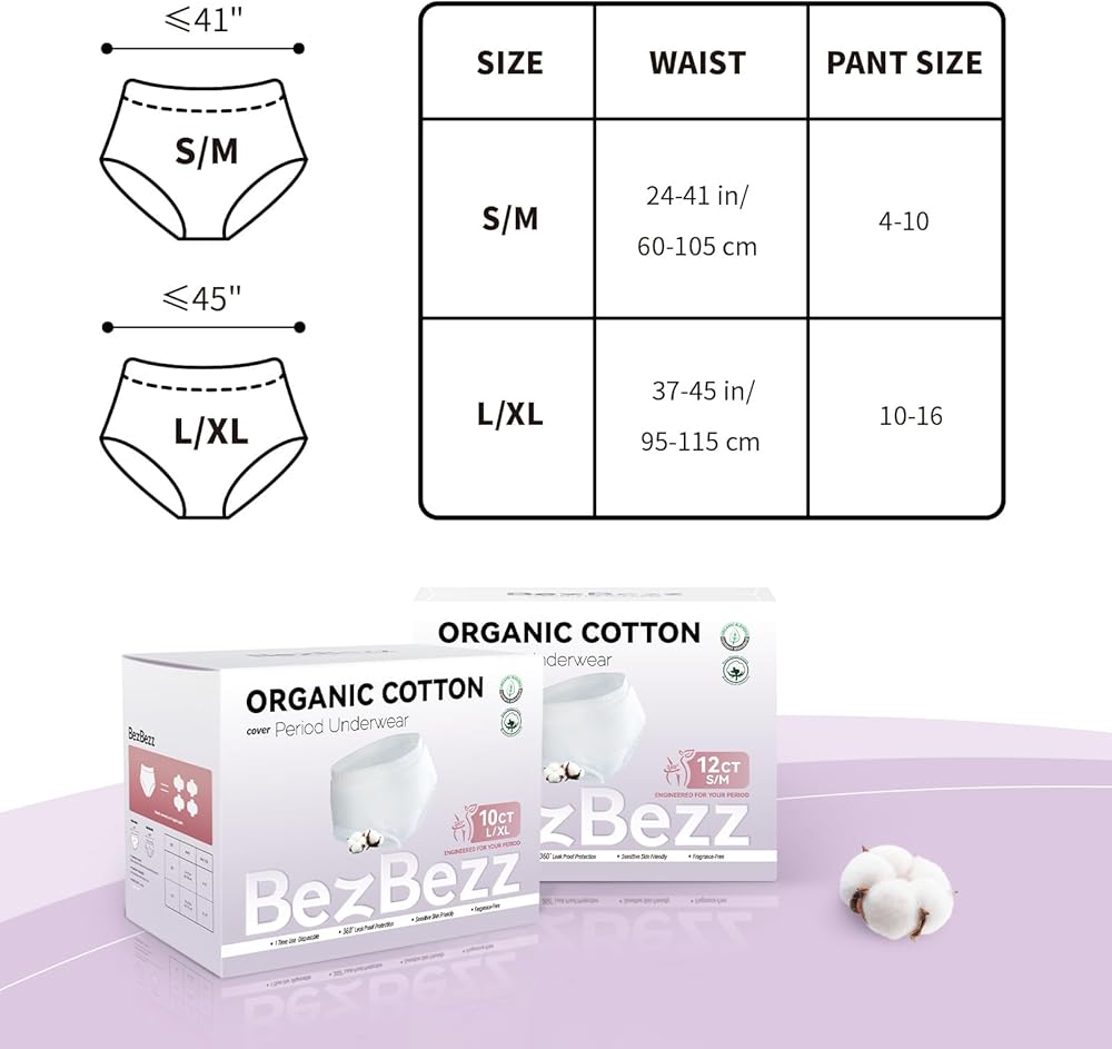مثالية للتدفقات الثقيلة ، وبعد الولادة ، والمراهقين - تعتبر الملابس الداخلية للسيدات في Bezbezz مثالية لأيام التدفقات الثقيلة ، والحماية بين عشية وضحاها ، واستعادة ما بعد الولادة. الامتصاص السريع مع 4x امتصاص منصات العادية بين عشية وضحاها ، كما أنه مثالي للمراهقين والنساء مع دورات غير منتظمة. ابق جافًا ومريحًا وواثقًا ، ليلًا أو نهارًا