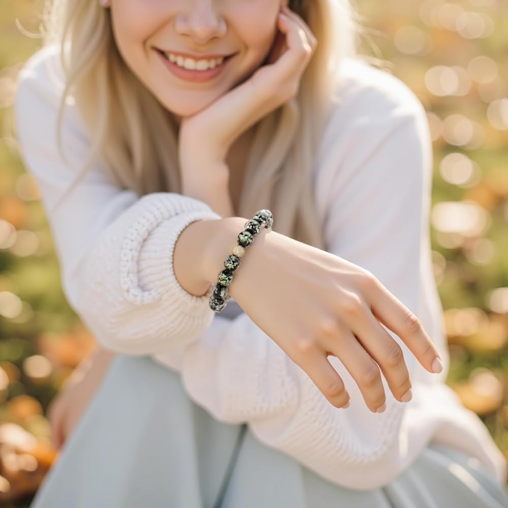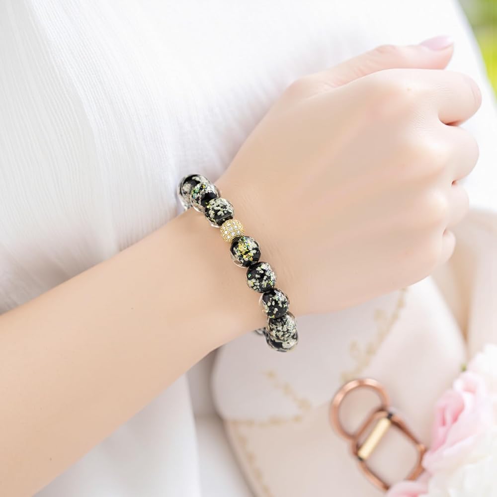 المواد والحجم: تتكون أساور حورية البحر المجرة هذه من حبات زجاجية مضيئة من طراز إيراتفيل 10 ملم وحبل مرن عالي الجودة 4 حبلا ، وليس من السهل كسرها ، ومناسبة لحجم الرسغين بين 6.5 بوصة إلى 7.3 بوصة.