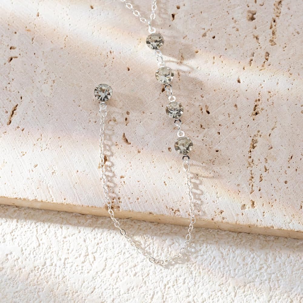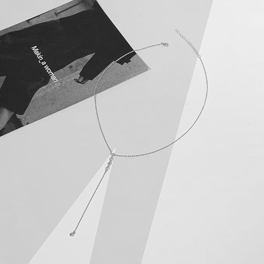 JoyToGo Long Necklaces for Women Trendy Lariat Necklace Dainty Silver Y-shaped Drop Necklace Long Silver Prom Necklace Wedding Jewelry Gifts