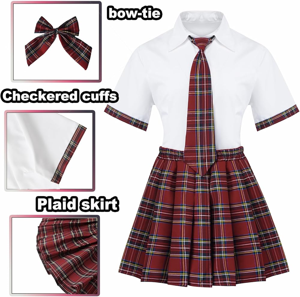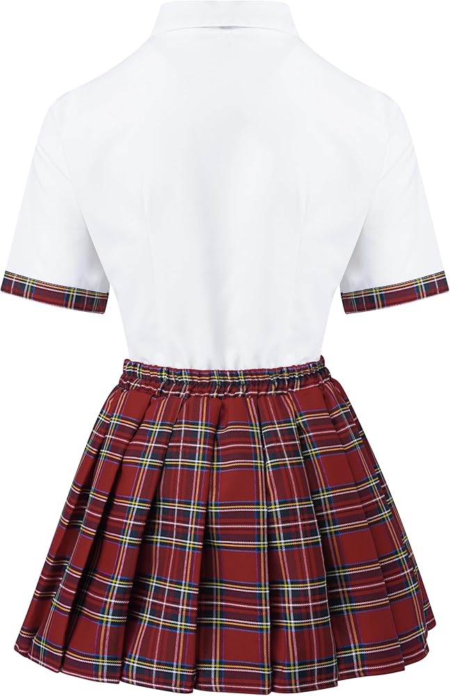 Size & Fits: يتوفر ملابس Girl School في ثلاثة أحجام (S-XL) لضمان ملاءمة مثالية لشخصيتك (يرجى التحقق من مخطط الحجم لاختيار الحجم الصحيح). الجزء العلوي الأبيض مريح ومريح ، وتنورة منقوشة لها حزام مرن ، وسهل العثور على حجم مثالي وسهل وضعه والإقلاع.