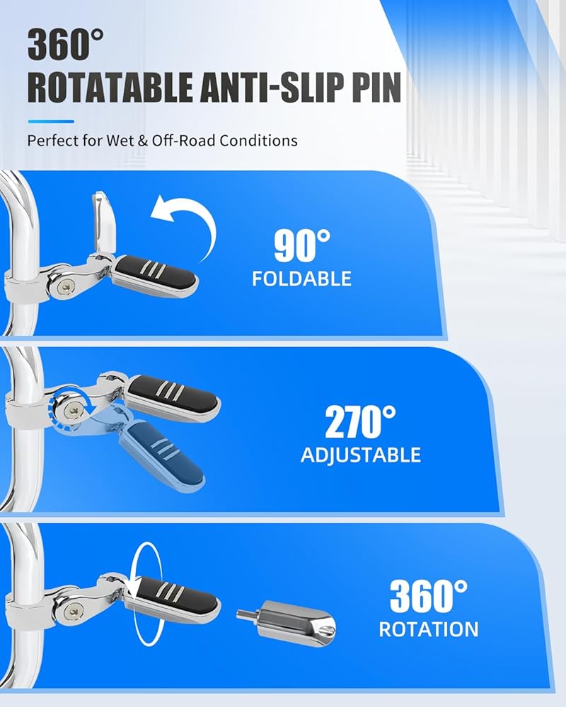 • يتميز 【𝐅𝐥𝐞𝐱𝐢𝐛𝐥𝐞 𝐀𝐝𝐣𝐮𝐬𝐭𝐦𝐞𝐧𝐭 𝐅𝐞𝐚𝐭𝐮𝐫𝐞𝐬】 بتناوب 360 درجة وزوايا الإمالة القابلة للتعديل 270 درجة ، مما يسمح للركاب بتخصيص موضع القدم وفقًا لتفضيلاتهم. تصميم 90 درجة قابل للطي لتخزين مريح ومواقف السيارات.