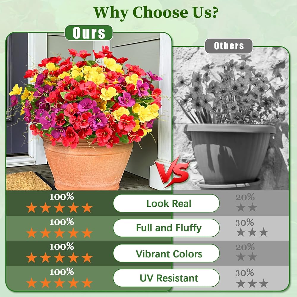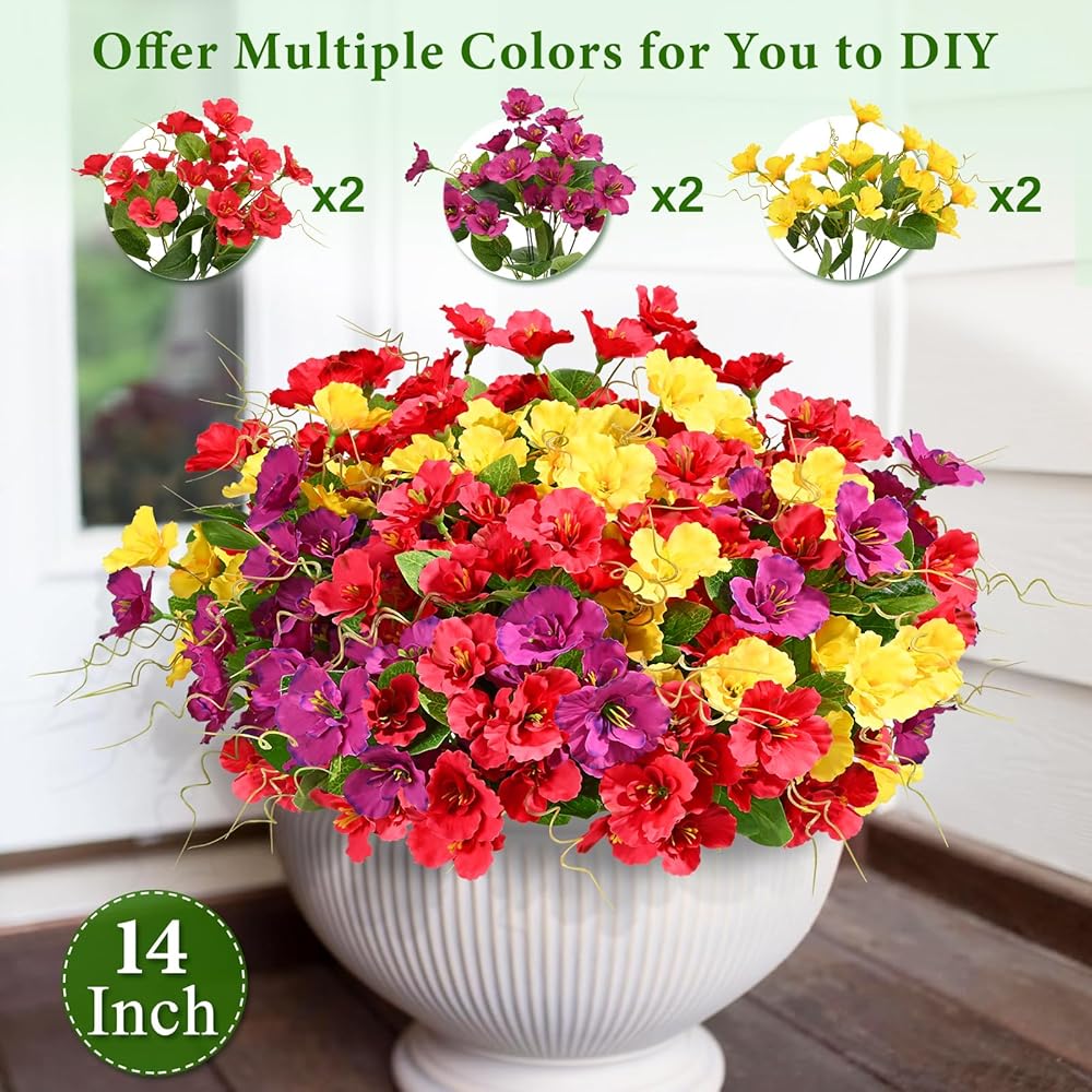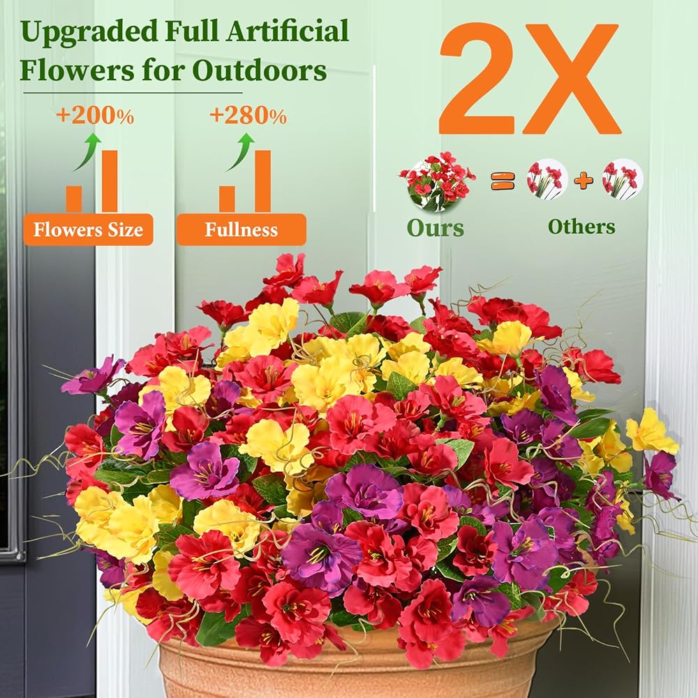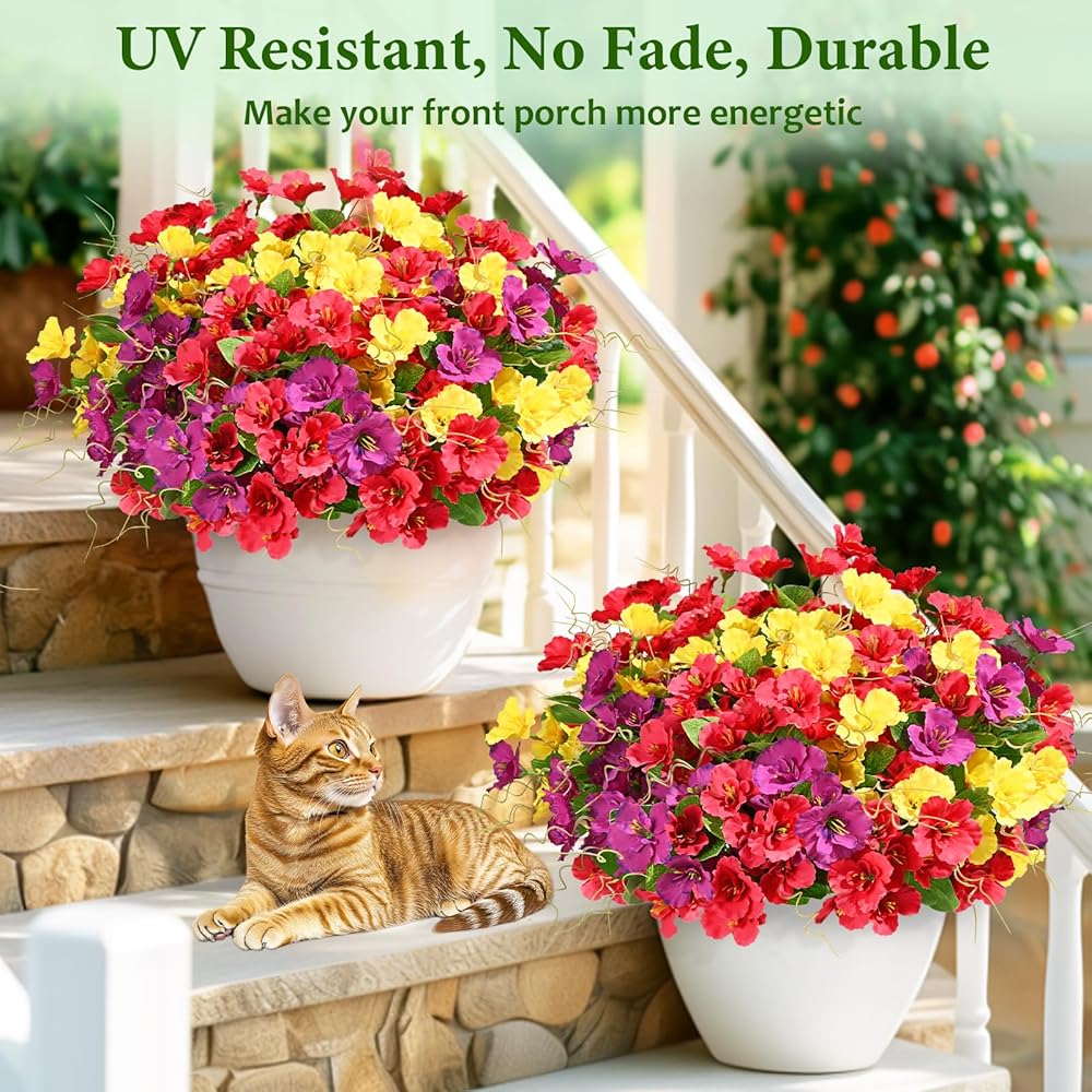 【مقاومة للأشعة فوق البنفسجية ودائمة】 قل وداعًا لخيبة أمل الحديقة التي تم تبييضها بواسطة أشعة الشمس ، تتم ترقية أزهارنا الاصطناعية في الهواء الطلق لتحسين مقاومتها للأشعة فوق البنفسجية بشكل كبير ، وتشكل في أشعة الشمس الذهبية دون شاذة ، وهي شهادة على الجمال الخالد الذي يضيف لونًا إلى الفضاء في الهواء الطلق بعد عام.