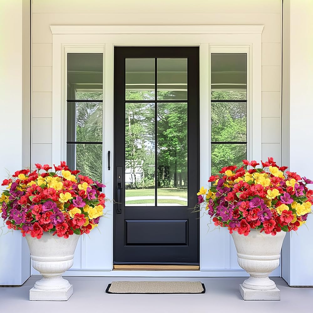 【ألوان نابضة بالحياة الكاريزما】 لماذا تنتظر الربيع؟ أضف لمسة من اللون والفرح إلى عتبة داركم مع زهورنا المزيفة في الهواء الطلق إلى الأبد. سواء كانت شغوفة باللون الأحمر أو الأصفر المشمس أو الأرجواني النابض بالحياة أو الأبيض الأنيق ، فإن زهورنا المصطنعة في الهواء الطلق تستحم مساحتك الخارجية في توهج من الإزهار الأبدي ، مما يجلب لك الفرح على مدار السنة.