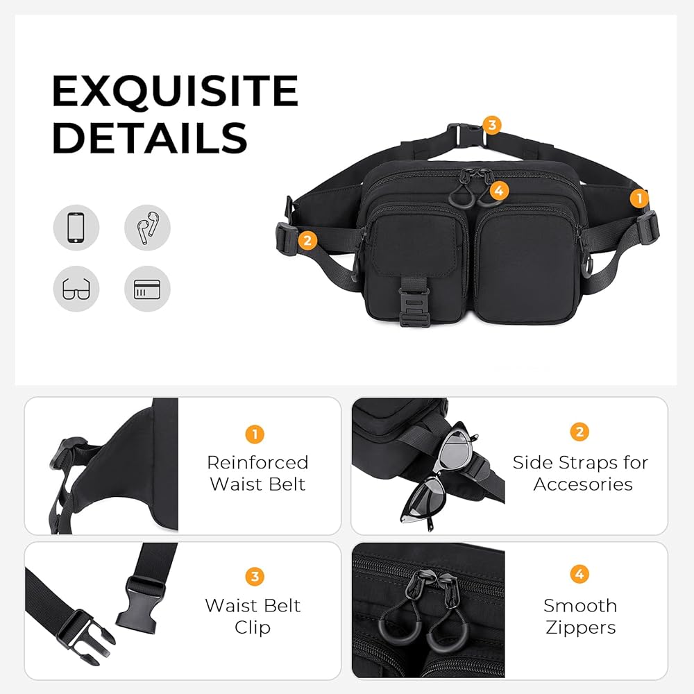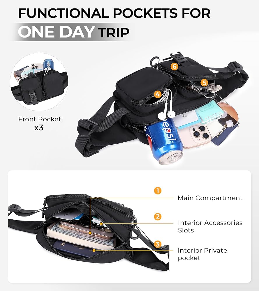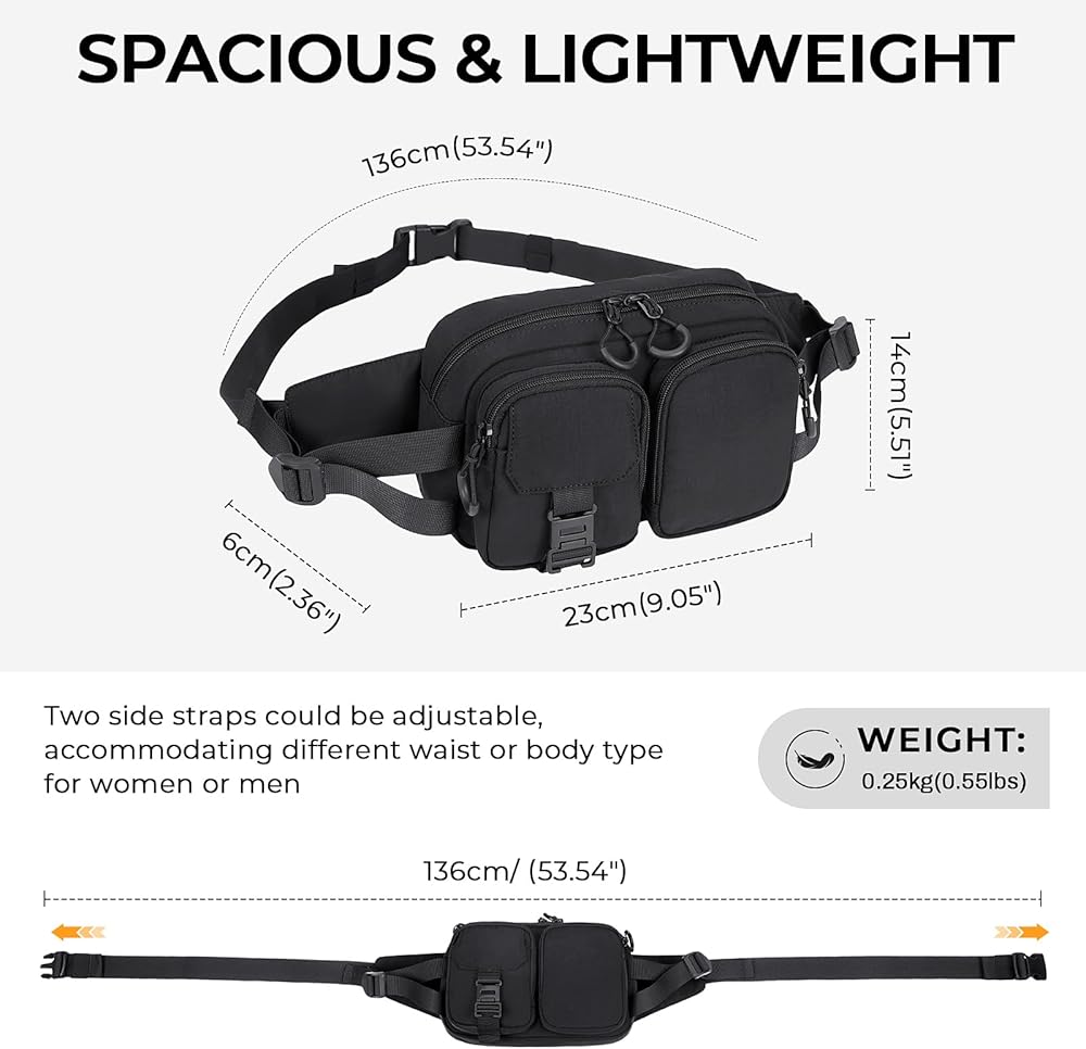 خيارات حمل متعددة الاستخدامات: قم بتحويل أسلوبك باستخدام حزم Fanny متعددة الوظائف! قم بالتبديل بسهولة بين حقيبة الخصر أو حقيبة حبال كروس أو كيس كتف ، مع إبقاء يديك خالية مع ضمان أن تكون ممتلكاتك دائمًا في متناول اليد