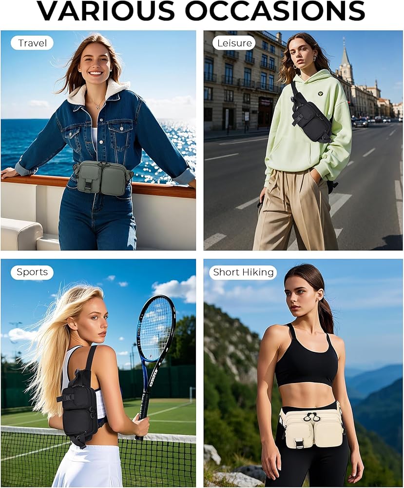 أنيقة وعملية: تبرز مع حزم Fanny العصرية الخاصة بنا للنساء التي تتميز بألوان وتصميمات أنيقة ، ومطابقة جميع ملابسك الخارجية أو اليومية ، وهي مناسبة للعديد من الأنشطة ، والتمرينات الخارجية ، والمشي لمسافات طويلة ، وركوب الدراجات ، والجري ، والسفر.