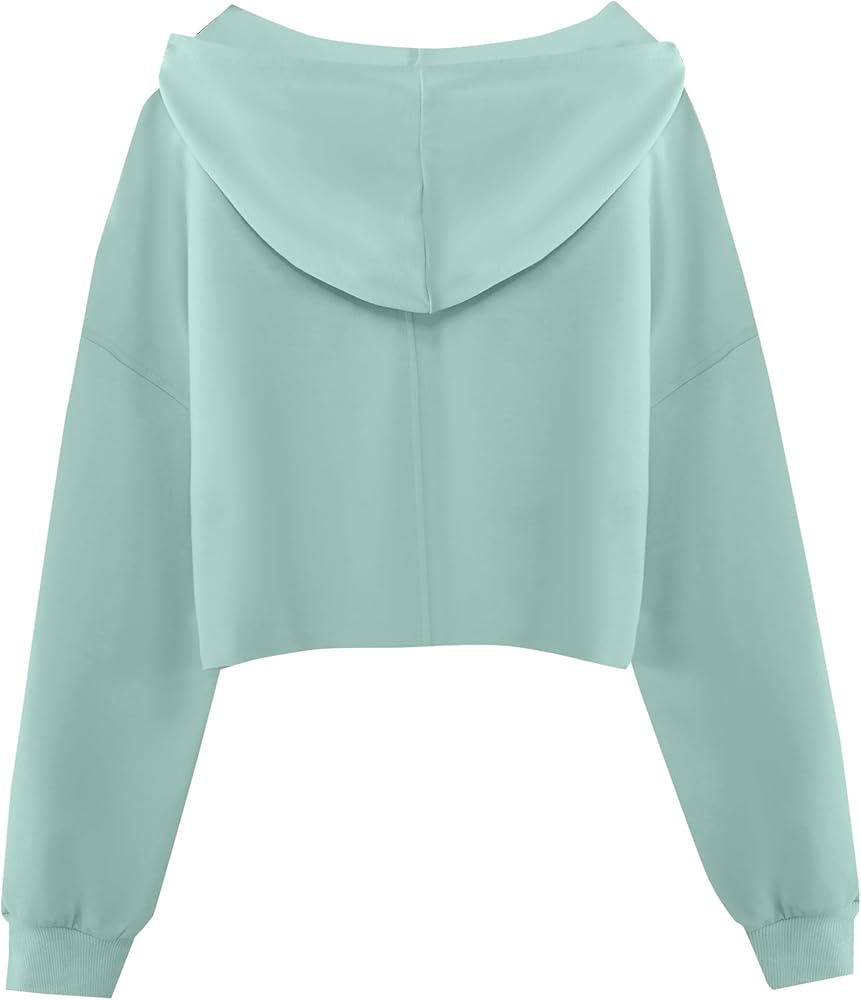 Remidoo Women's Casual Drawstring Long Sleeve Crop Top Hoodie Plain Sweatshirt