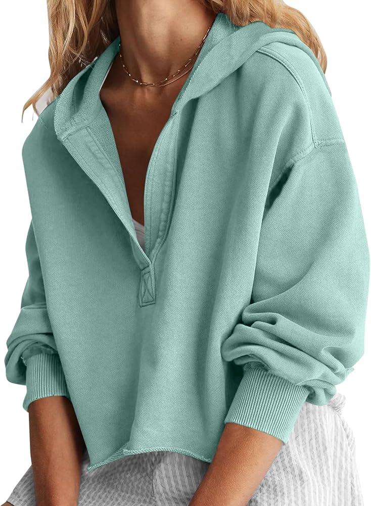 • Drawstring hoodie, casual loose fit, plain cropped sweatshirt for spring / fall wear teen girl trendy sweater