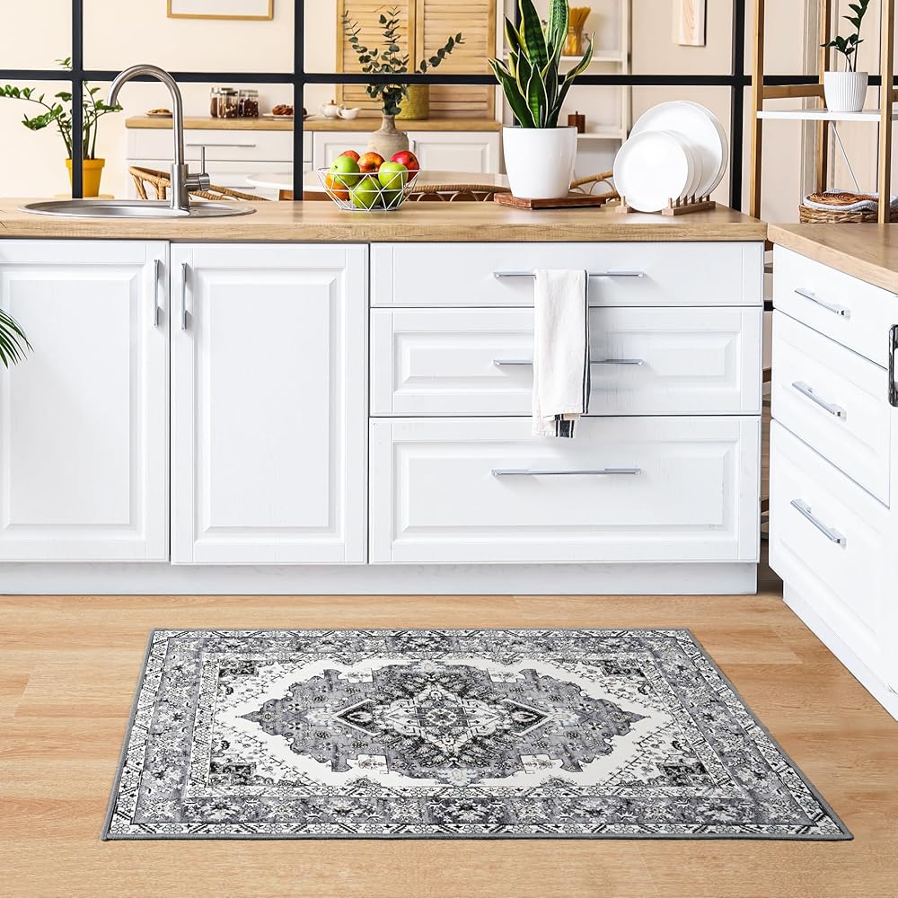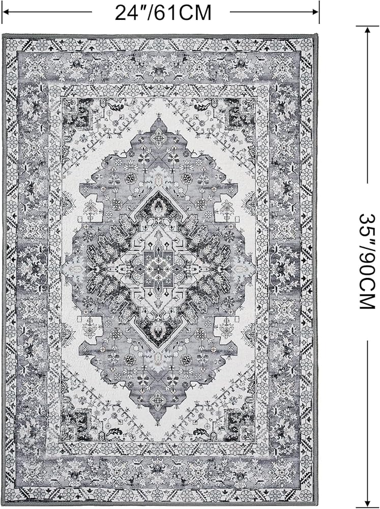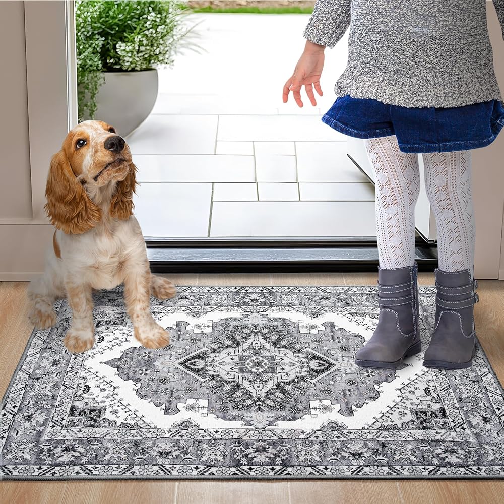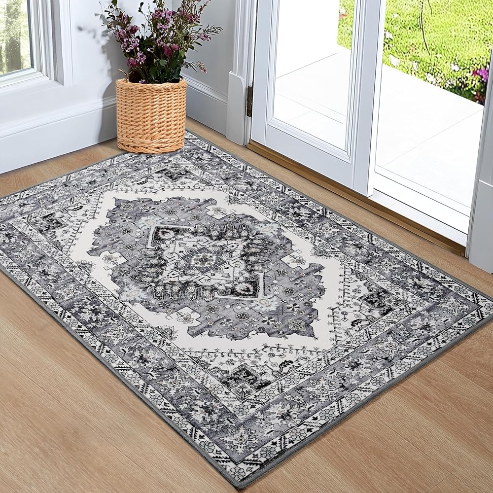 Noahas سجادة الباب الأمامي للمدخل الداخلي والخارجي، 2 × 3 سجاد منطقة صغيرة رمادية وزرقاء، سجاد عتيق قابل للغسل في الغسالة، سجاد منخفض الوبر لمدخل الحمام، المطبخ، غرفة النوم، غرفة الغسيل، ديكور المنزل