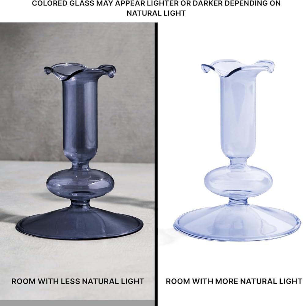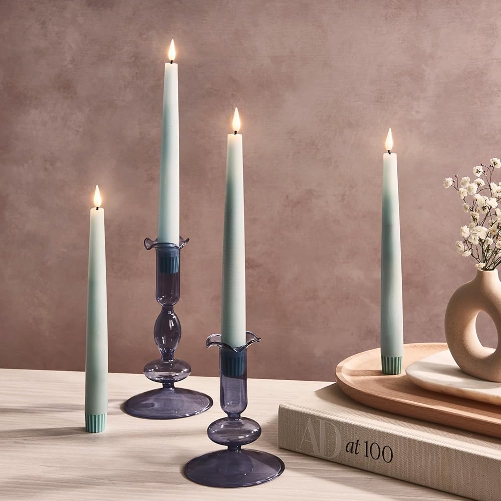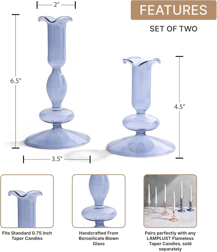 حاملي شموع لامبلوست ، مجموعة من حاملي شموع زرقاء ، 4.5 و 6.5 في حامل الشمعة الزجاجية ، يناسب الشموع الفائقة القياسية ، ديكور عصي الشمعة للقطاعات المركزية ، القهوة مائدة القهوة