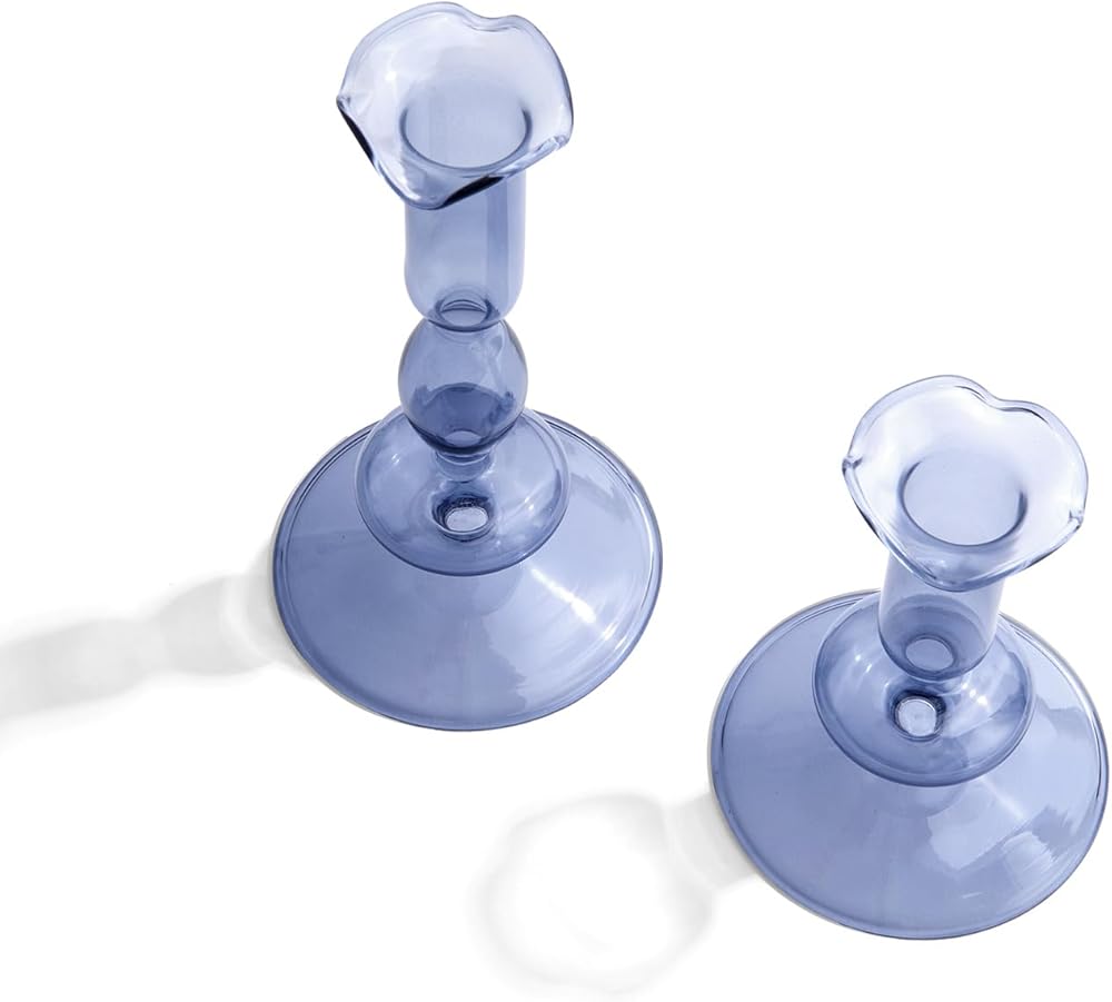 - حاملي الشموع التفتق - مجموعة من اثنين من حاملي الشمعة الزجاجية المنحوتة على ارتفعة.