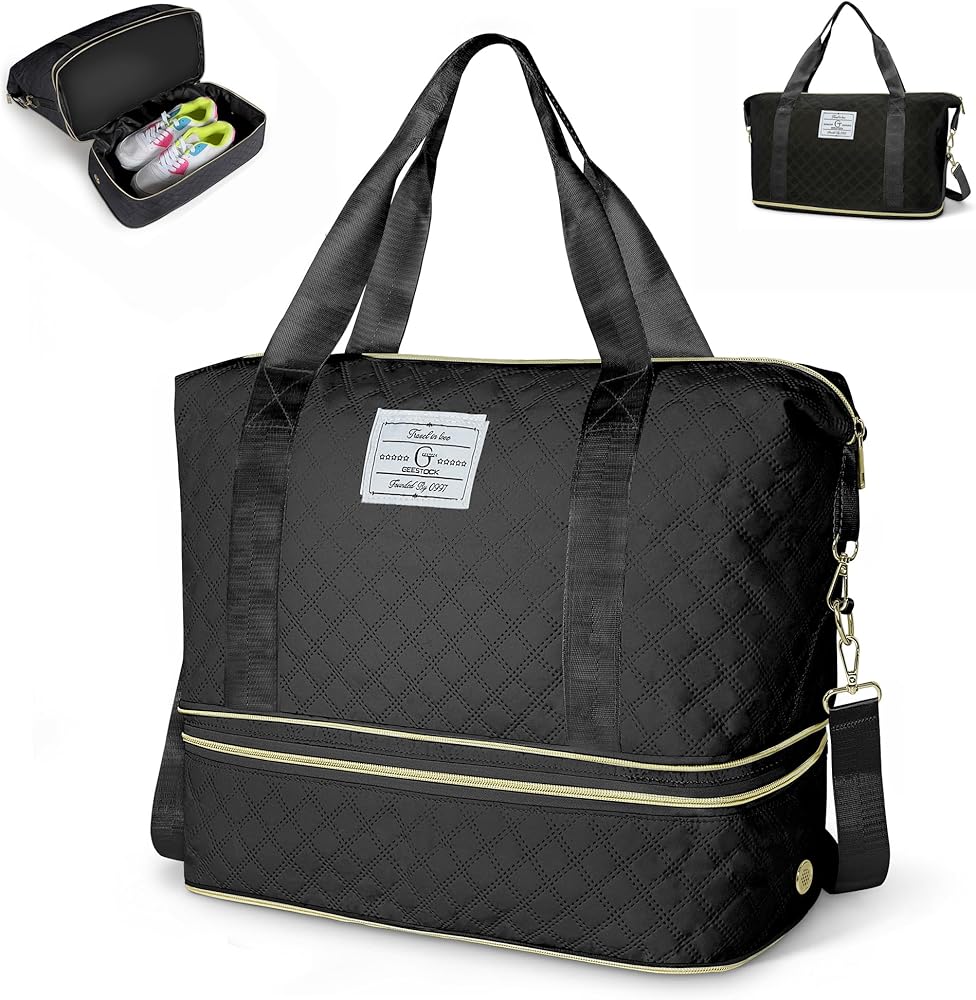 حقيبة غوستوك للسفر للنساء للنساء ، والأكياس القابلة للتوسيع خلال الليل مع مقصورة الأحذية ، وحفلة خفيفة الوزن على حقيبة صالة رياضية داكز شخصية للسفر ، والطائرات ، والرياضة (أسود)