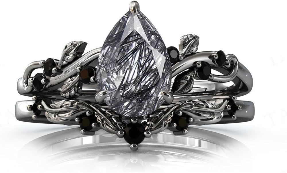 • Pear Black Rutilated Quartz Ring : الكوارتز الأسود الطبيعي يرمز إلى التوازن والأمل. تمثل الخطوط السوداء تحديات ، بينما تشير الكوارتز الشفافة إلى الأمل. إنه يشجع على القوة في مواجهة الظلام ، وحماية الذات الداخلية ، والسعي لتحقيق التوازن والتنوير .. هذه الحلقة الزفاف متينة بما يكفي لحياة عمل مزدحمة وستكون مشعًا تحت ضوء العشاء المسائي والحفلات الساحرة.