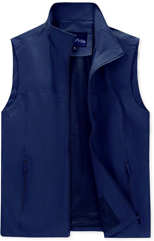المادة: رجال العمل في الهواء الطلق سترة سفاري ، سترة سفر سفر الصيد خفيفة الوزن ونسيج قابلة للتنفس ، أمامي سستة ، نوبة منتظمة ، بلا أكمام.