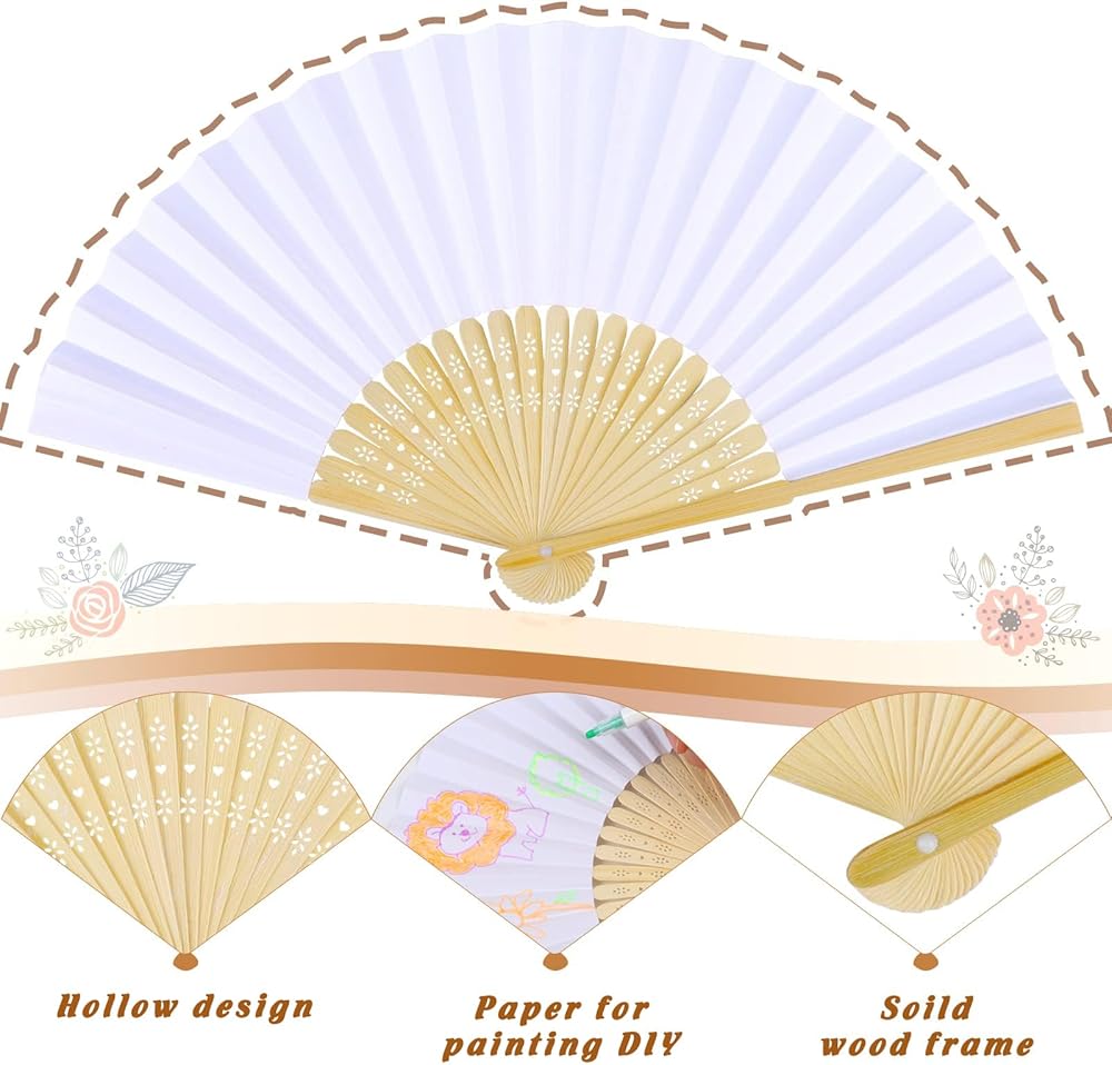 • متعدد الاستخدامات للعديد من الأحداث: هذه المعجبين القابلة للطي DIY مناسبة لحفلات الزفاف والاحتفالات (الحفلات ، الاستحمام ، الأحداث في الهواء الطلق) ؛ يمكن استخدامها كزخرفة لافتة للنظر وفعالة في توفير نسيم بارد أثناء الاحتفالات