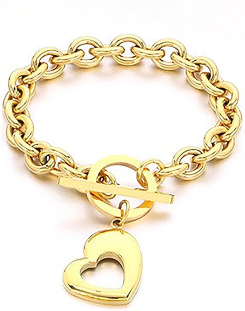 سوار سحر القلب المكتنزة للنساء ، مقاوم للماء بحجم 7.5 بوصات ، و 18 كيلو بايت مطلي بالذهب مقاوم المقاوم من الفولاذ المقاوم للصدأ ، مع إكسسوارات مجوهرات مشابك التبديل