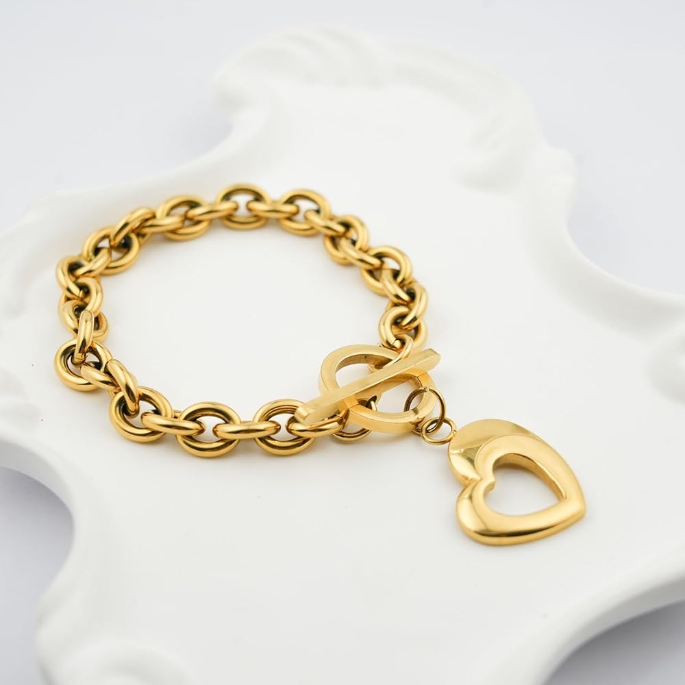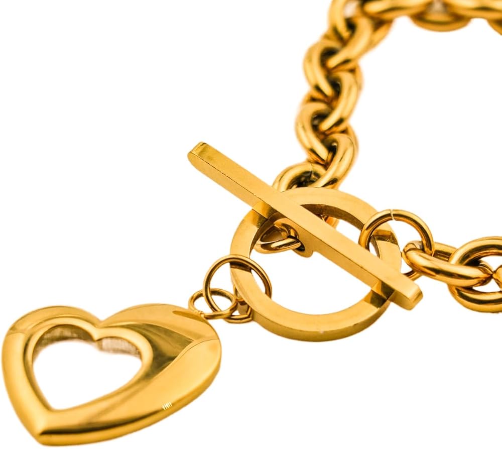 • التصميم: تم تصنيع سوار سلسلة ذهبية مكتنزة مع سحر قلب مجوف لتبرز ، بشكل جميل. تصميم المشابك يبدو أكثر ابتكارًا وعصرية