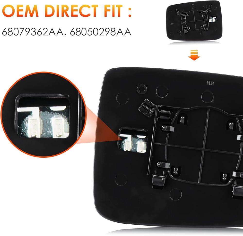 【استبدل رقم OEM】: 68079363AA ، 68079362AA لزجاج المرآة الجانبية اليسرى واليمنى ، يرجى التحقق من رقم OE لتناسب سيارتك قبل الشراء ، والتأكد من أن النموذج ، والمعلومات المطبقة.