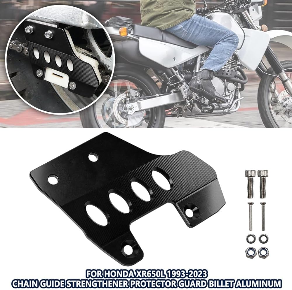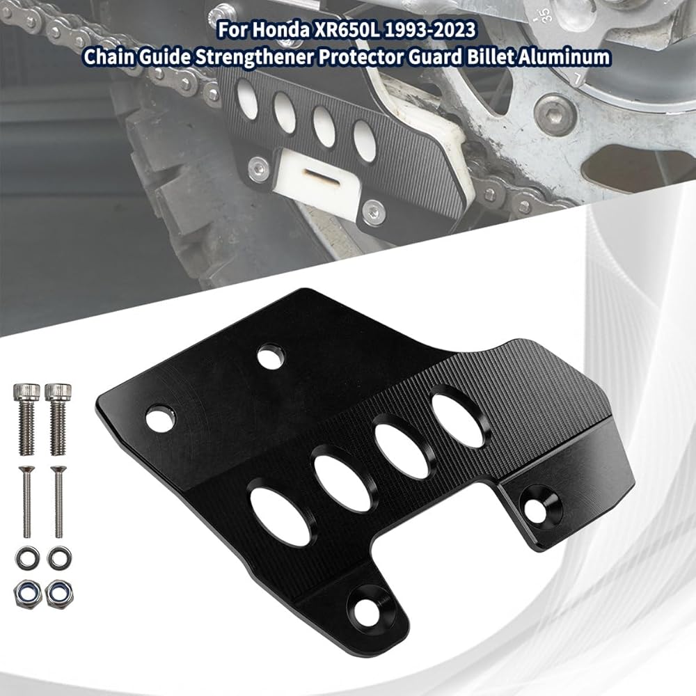 The chain guard guide protector Compatible with Honda XR650L 1993-2023,it reduce the load on the swing arm attachment stay by using high quality material that is durable against impact and wear.