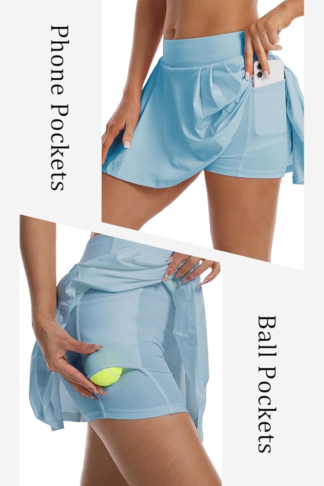شورتات داخلية مع 4 جيوب: ميزات Skort الرياضية 2 في 1 مع 4 جيوب في تحت السراويل القصيرة لإطلاق يديك أثناء التمرين. جيوب علوية كبيرة بما يكفي لعقد هاتفك دون الوقوع. تم تصميم جيبين أخريين مخفيين مواجهة لأسفل للرياضة مثل التنس أو الجولف أو المخلل لحمل الكرة
