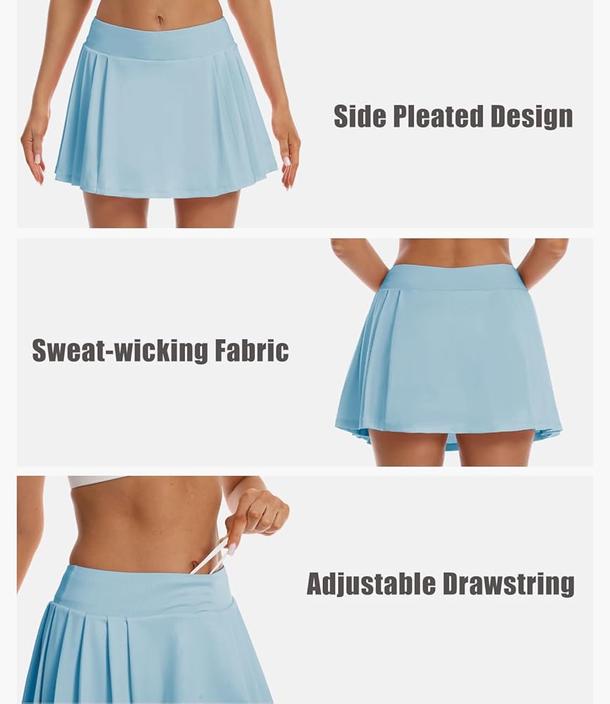 تنورة تنس مطوية مع شورتات مدمجة: تنورة غولف الجولف الرياضية هذه للنساء المصنوعة من التنورة المطوية اللطيفة والسرات السروال الداخلية لتوفير شعور إضافي بالأمان. لا داعي للقلق بشأن عدم المشاركة والتركيز فقط على الرياضة الخاصة بك
