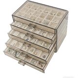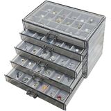 5 أدراج مربع مجوهرات: منظم المجوهرات الأكريليك مع 5 أدراج قابلة للإزالة ، والتي تحتوي على 90 شبكة تمامًا للتخزين ، فإن مقبض الدرج سهل السيطرة ، يمكنك إخراج الأدراج بسلاسة