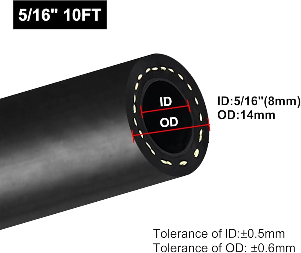 [الحجم] المعرف: 5/16 بوصة (8 مم) ، التسامح هو 0.5 ملم ؛ OD: 14 مم ، التسامح ± 0.6 مم ؛ الطول: 1 قدم (0.3M). نصف قطر الانحناء: 64mm.