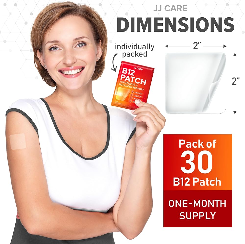 ✅ 1 MONTH SUPPLY – A box of JJ Care B12 patches contains 30 patches, a supply that's good for 1 month of uninterrupted use. The use of these B12 patches is an easy way to incorporate intake into your daily routine.