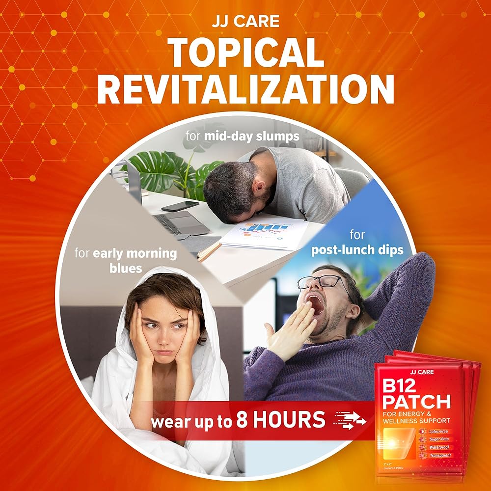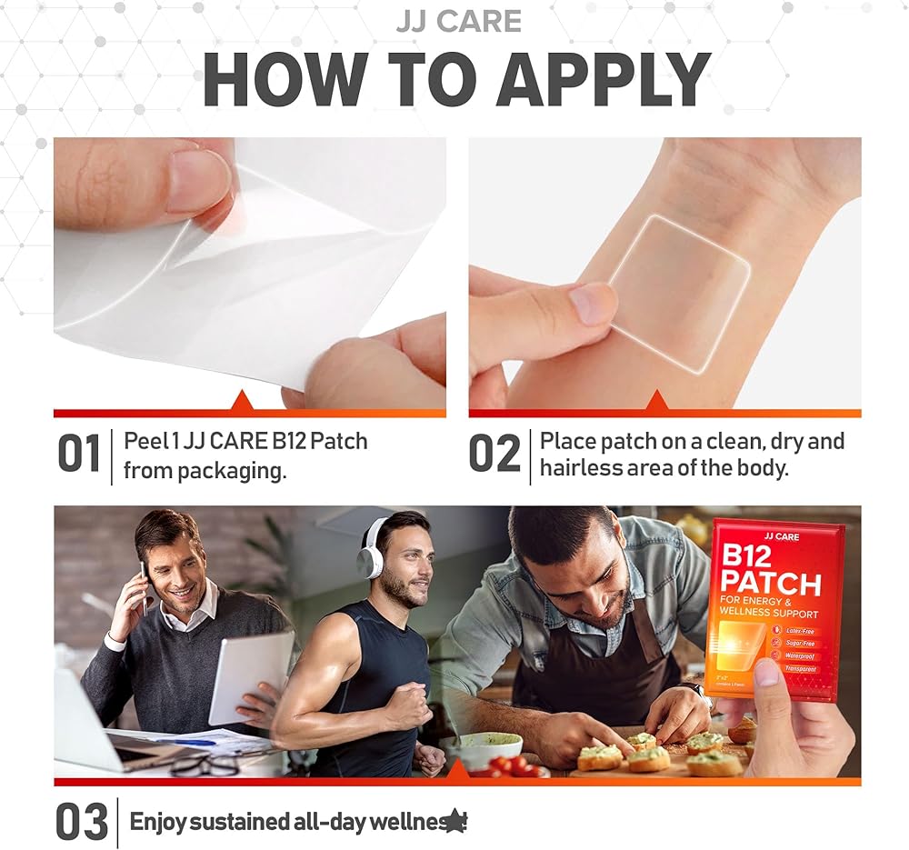 ✅ DAILY WELLNESS – JJ CARE B12 Patch enables you to feel great all of the time! Helps in conquering sluggish afternoons with the transdermal JJ Care B12 patch. Each patch is infused with all-natural ingredients to give your health that much-needed pick-me-up.
