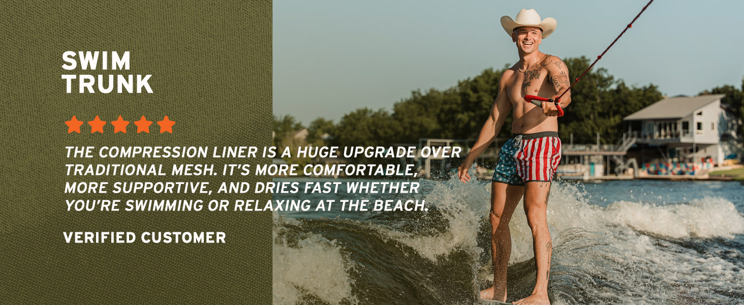 Make a splash at the beach or pool in these stylish swim trunks! Featuring a compression liner rather than a typical mesh netting for ultimate comfort and support, these trunks are perfect for all your aquatic adventures. The quick drying, sweat resisting, and four-way stretch material ensures you stay dry and comfortable all day long. The elastic waistband with drawstring cord allows for a customizable fit, while the trendy design will have you looking cool and confident.