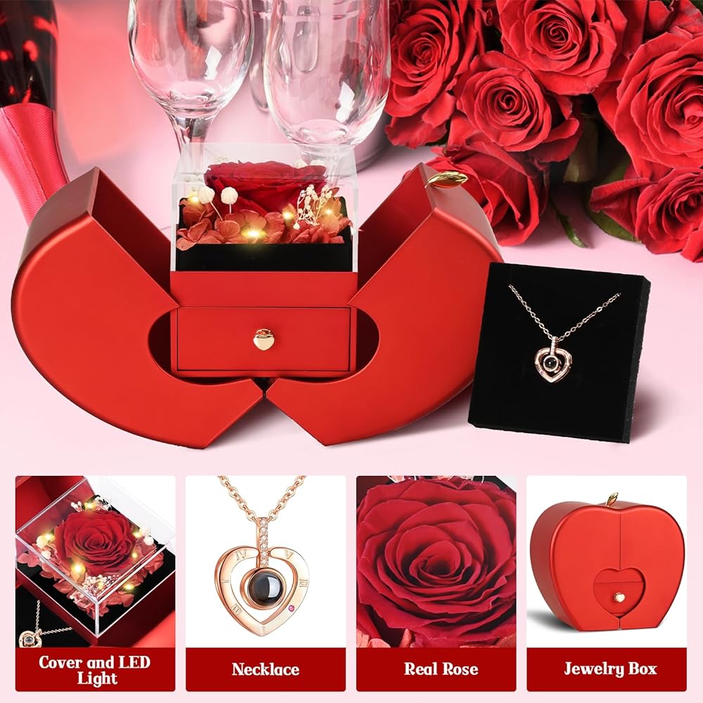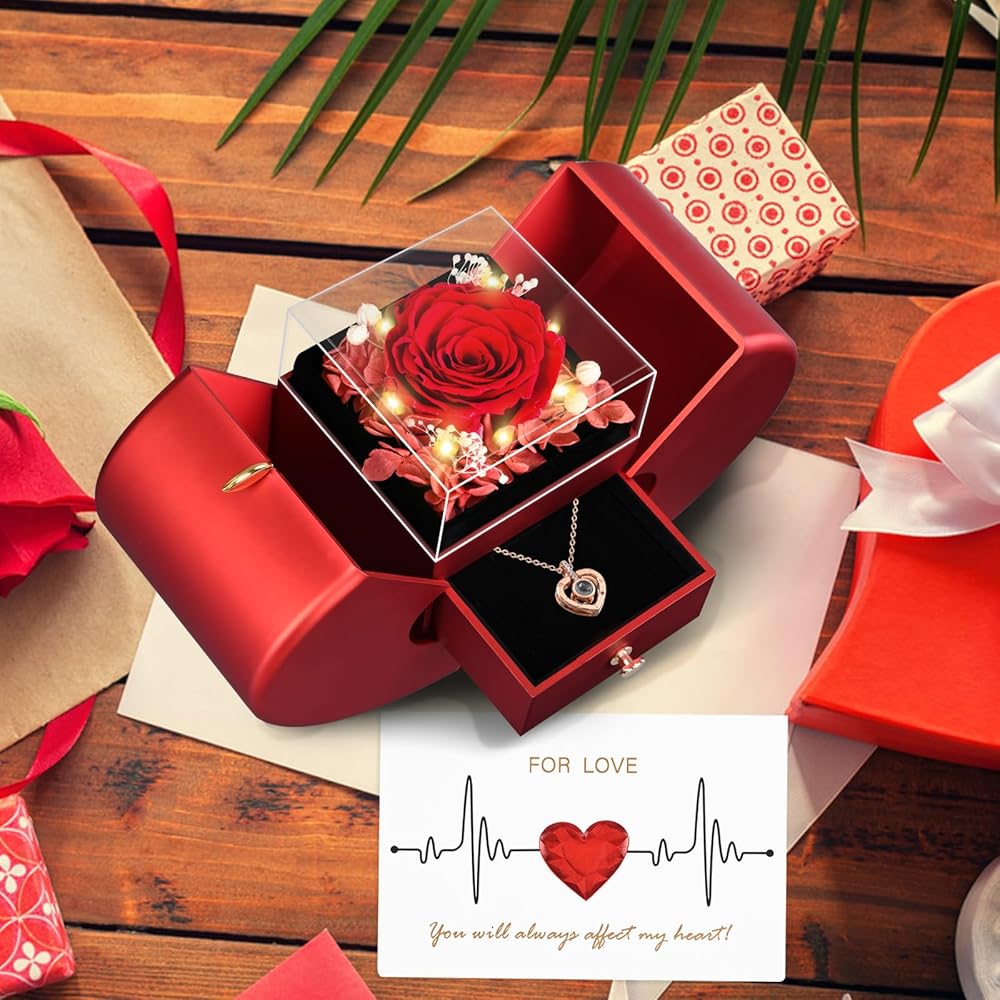 محفوظ وردة حقيقية مع أنا أحبك هدايا القلادة لأمي جدة زوجة صديقة في عيد ميلاد الأم عيد ميلاد عيد الحب الذكرى السنوية الهدايا الرومانسية ، زهرة وردة حقيقية جديدة للنساء ماما نانا