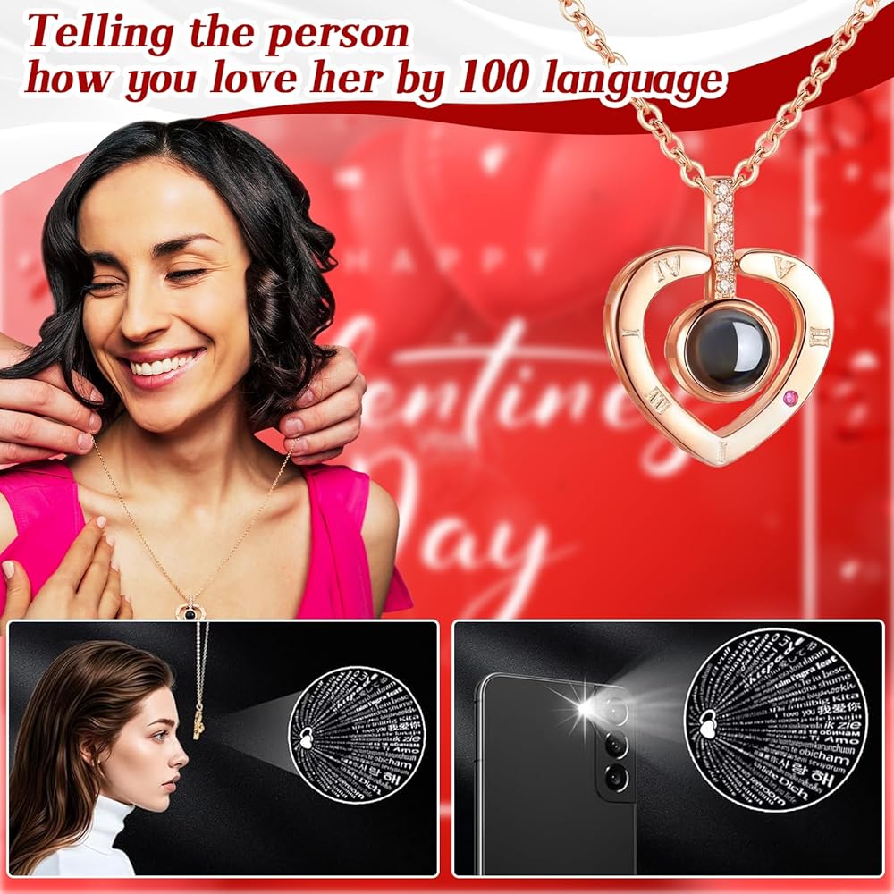 • قلادة مع أنا أحبك في 100 لغة: قلادة القلب في صندوق الدرج محفور مع أنا أحبك في 100 لغة ، مما يعني أن هناك 100 طريقة للتعبير عن الحب لها. بغض النظر عن البلد الذي تتواجد فيه ، فهذا دليل على حبك لها. سوف يعتز أحد من قبل أي مناسبة رومانسية.
