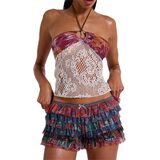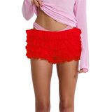 Women Lace Bloomers Shorts Casual Summer Layered Ruffle Elastic Short Pants for Vacation Beach Nightclub Streetwear